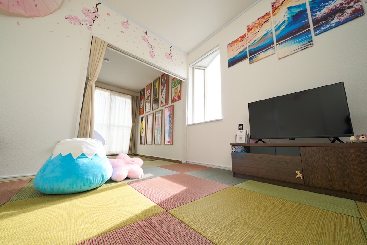 ¡Alquila toda esta casa con aguas termales privadas! ¡Nueva construcción en otoño de 2022, para una estancia cómoda de los huéspedes de Airbnb! Flujo 100 % natural de agua termal fresca, disponible las 24 horas solo para tu grupo. A 5 minutos a pie de una tienda de comestibles y a 6 minutos de una parada de autobús (¡acceso directo desde el aeropuerto de Haneda!) La cama es de estilo tradicional de tatami japonés. La cocina está totalmente instalada y se puede disfrutar de la barbacoa en la zona exterior del jardín. Se proporcionan bicicletas (¡NUEVO!) ¡Suite para una o dos familias!