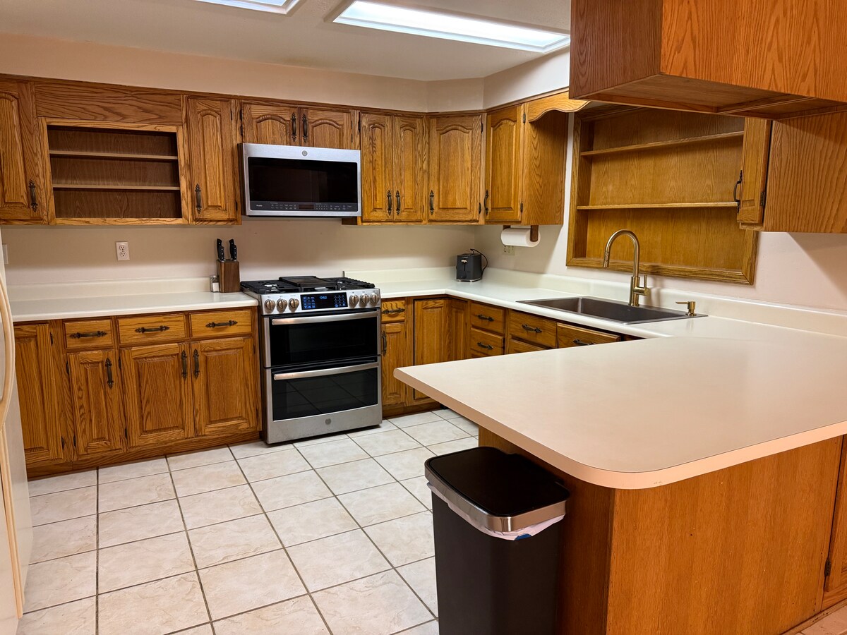 Your family will be close to everything that the little town of Kearny has to offer. This comfortable home has 4 bedrooms and 2 baths, a full kitchen with a dining table and washer and dryer. The master has a king size bed and a full bathroom. The second, third and fourth bedrooms all have queen size beds. There is plenty of seating in the living room with a large tv. Note: At times there will be an old classic car parked in the driveway.