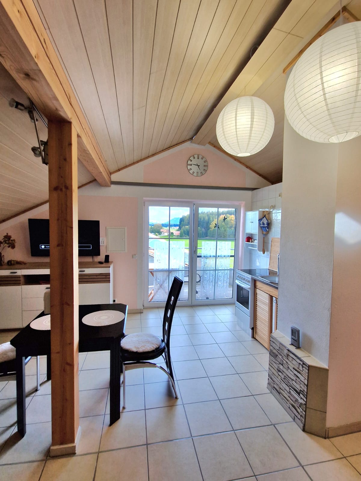 Großzügiges, offenes Ferienapartment im Dachgeschoß mit Bad und optisch abgetrenntem Schlafbereich, überall Fußbodenheizung, Bergblick, großer Balkon mit Morgensonne und Sonnensegeln. Kochnische mit Kaffeemaschine, Toaster, Wasserkocher und Kühlschrank. Ein Bahnanschluss (100 m) bringt euch nach Waging a. See (5km) mit Strand o. nach Traunstein (5 km) zum Einkaufen +Tagesausflüge nach z.B. Salzburg, München, Berchtesgaden, Königssee, Ruhpolding, u.v.m. Kostenloser Stellplatz.