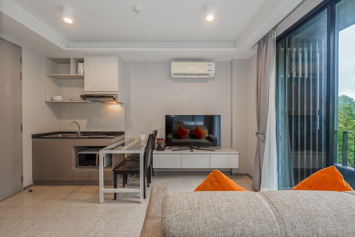 Este acogedor apartamento está ubicado en un edificio moderno y bien equipado a poca distancia a pie de la magnífica playa de Surin, lo que lo convierte en la base perfecta para aventureros solitarios o parejas en un viaje romántico por Phuket. En el apartamento tienes acceso a 3 piscinas: una encantadora piscina en la azotea con vistas panorámicas al mar, una pintoresca piscina con sombra refrescante en la planta baja y una piscina funcional con zona infantil en el segundo piso. También a tu disposición hay un gimnasio totalmente equipado.