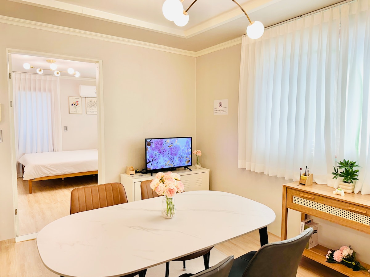 A 5 minutos a pie de Banwoldang | Hasta 8 personas | Alojamiento privado | Amplia sala de estar | Ropa de cama de hotel | Almacenamiento de equipaje