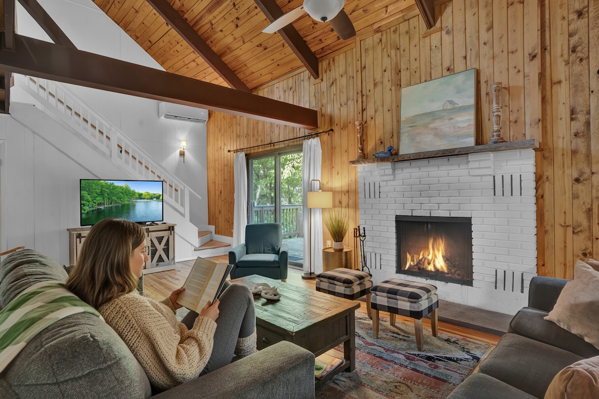 Siente la brisa de la montaña y escápate a esta cabaña de estilo alpino de 1966 recientemente renovada, ubicada junto al lago privado Glenwood en Vernon, Nueva Jersey. Esta acogedora cabaña de 2 dormitorios y 1 baño ofrece una escapada relajante a pocos minutos de Mountain Creek Ski, campos de golf, rutas de senderismo y mucho más. Tanto si disfrutas de las pistas en invierno como del lago en verano, esta cabaña alpina cuenta con todos los servicios que necesitas: ✔ Fogata Breeo Sala de✔ juegos Cocina ✔ Totalmente Equipada ✔ Cubierta envolvente Televisores ✔ inteligentes ✔ Wifi