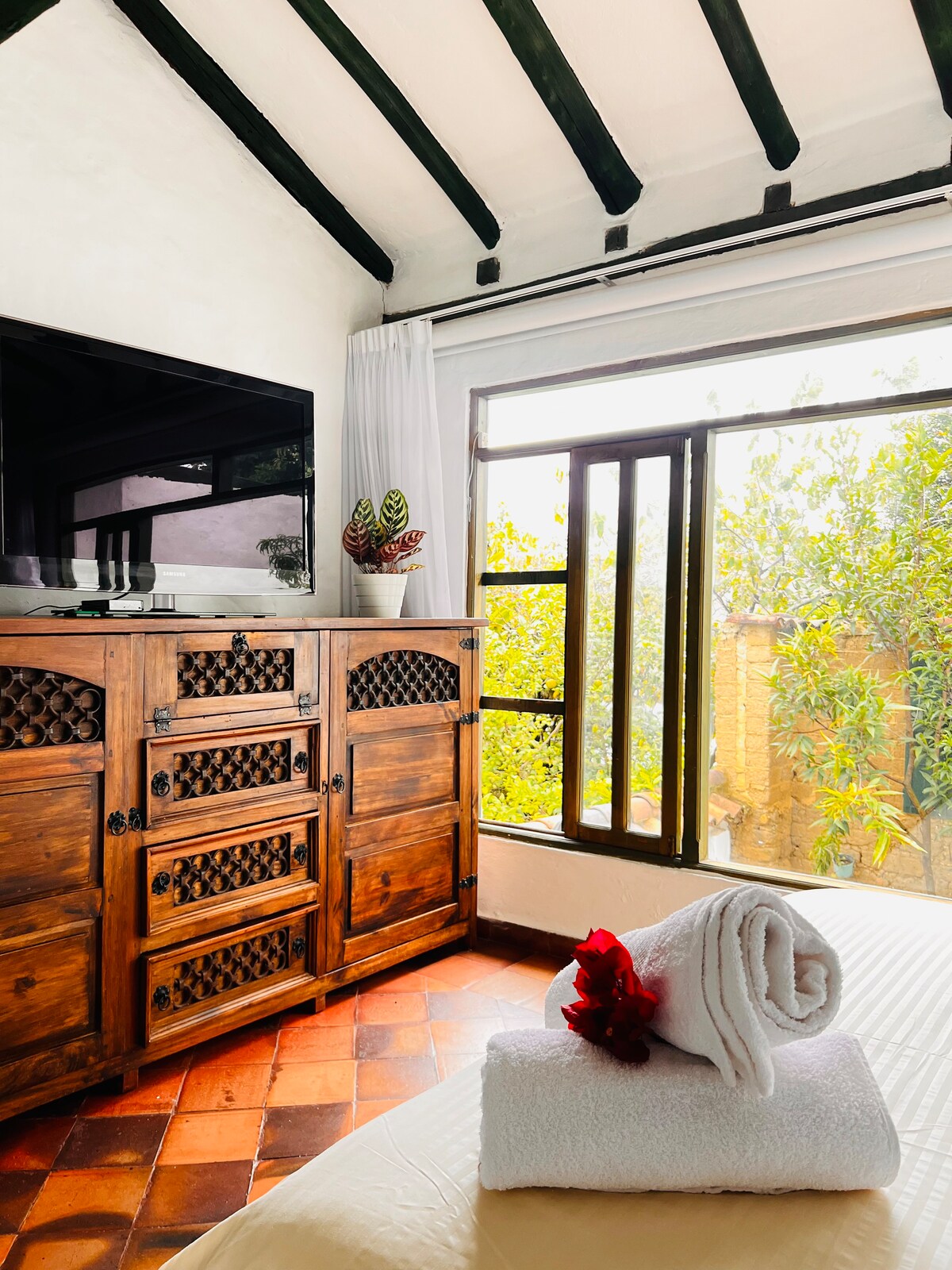 Bienvenidos al Jardín de Maria Antonia, ubicado a solo 15 minutos del centro de Villa de Leyva. Sumérgete en la tranquilidad de nuestro entorno campestre mientras disfrutas de un ambiente elegante, perfecto para descansar en pareja o en familia. Nuestras instalaciones ofrecen comodidad y serenidad para una experiencia inolvidable. ¡Esperamos que disfruten de su estancia!