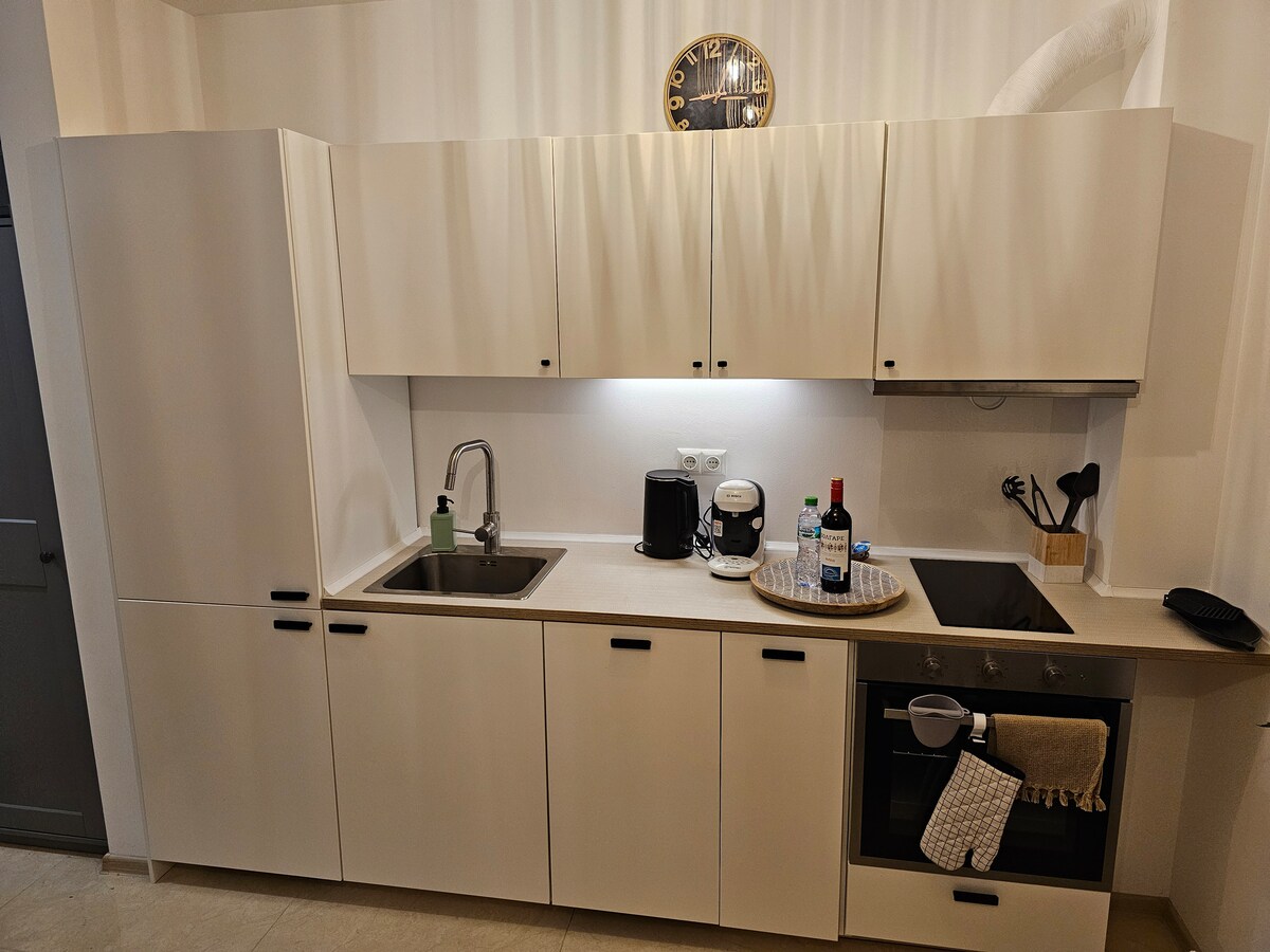 Moderno y acogedor apartamento de 1 dormitorio con vistas a la piscina en un nuevo complejo. Capacidad para 4 personas. Cocina totalmente equipada, aire acondicionado, lavadora, 2 televisores. Zona de barbacoa, piscina, acceso al spa (descuentos), estacionamiento bajo petición. A 10 minutos a pie de la playa, tiendas, restaurantes. A 30 km del aeropuerto de Burgas. Ideal para vacaciones o trabajo remoto.