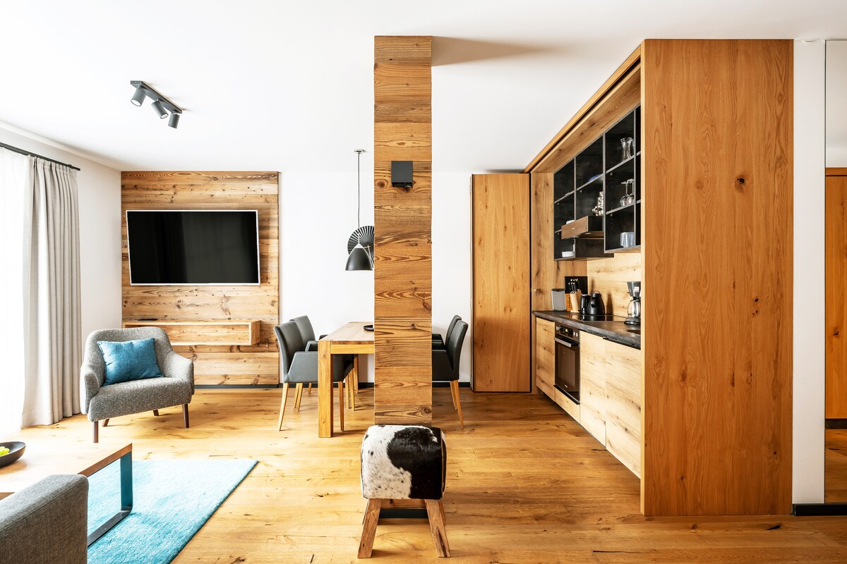 4Monkeys Apartments - Suite Langur: Para su construcción, utilizamos casi exclusivamente materiales naturales como la madera y la piedra. El padre de Toni, que es arquitecto, pudo cumplir casi todos nuestros deseos y, junto con las empresas constructoras de Vorarlberg, hicimos realidad nuestro sueño de una casa de madera purista en las montañas.