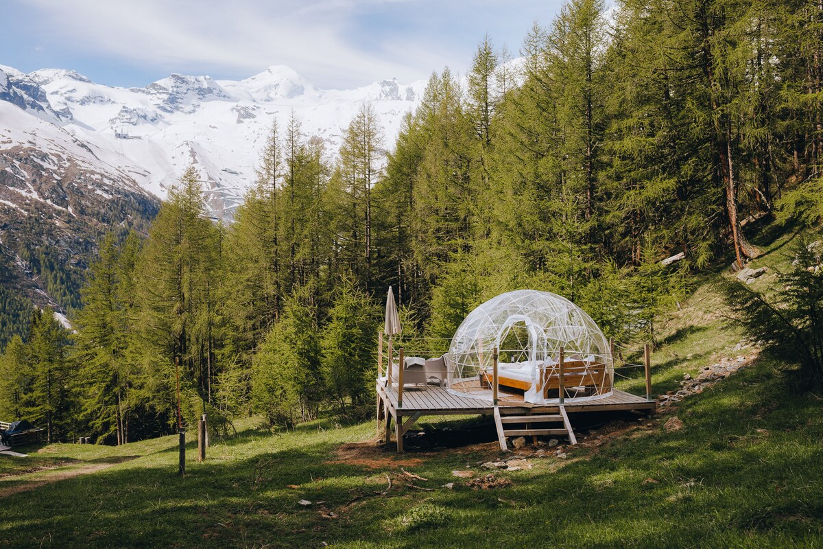 Tienda de campaña con forma de burbuja en Zuckeralp