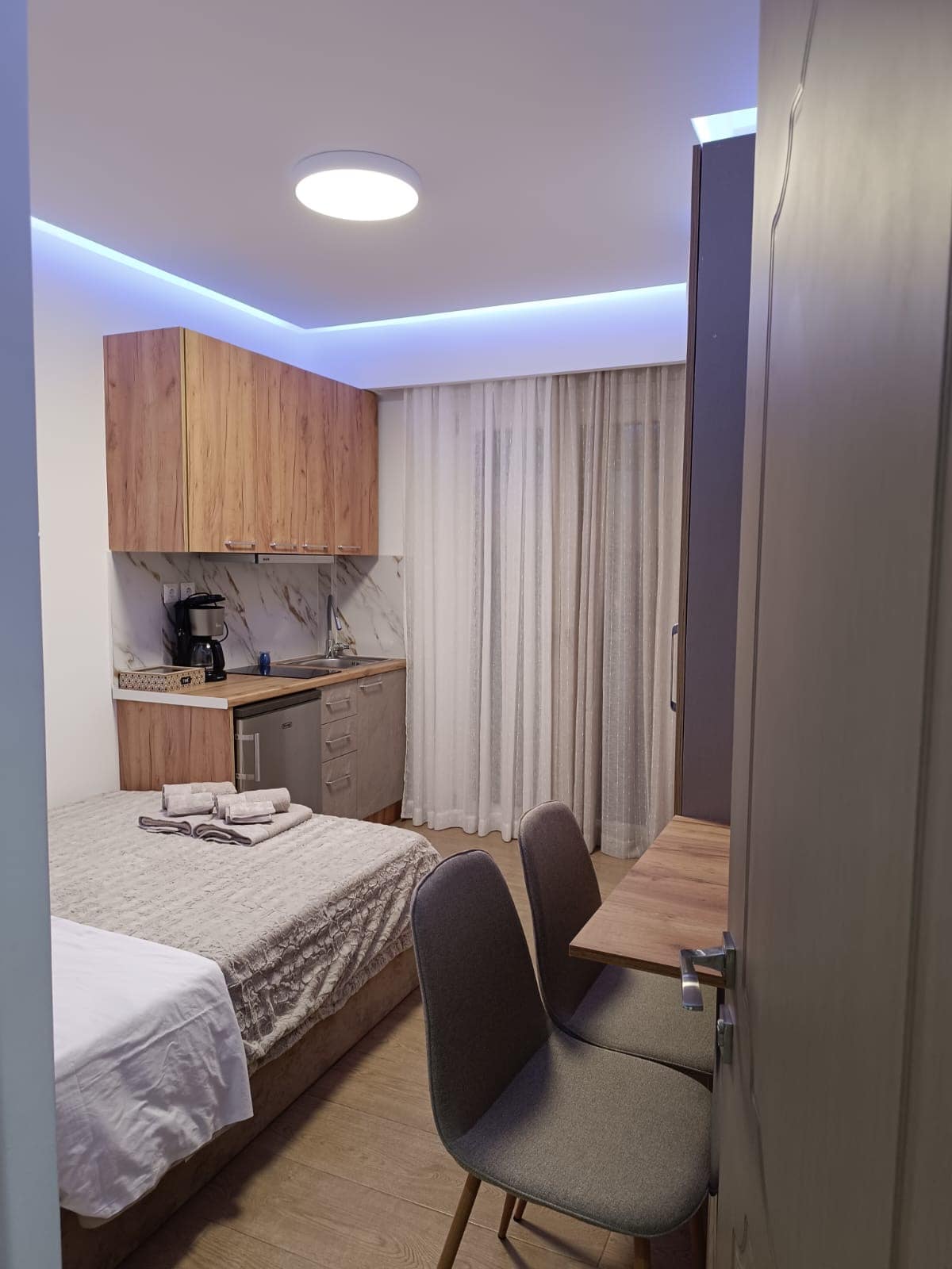 Αυτός ο ευρύχωρος και καλαίσθητος χώρος 30 τμ, είναι ιδανικός για ευχάριστες και ήρεμες διακοπές. Μπορεί να φιλοξενήσει μέχρι τρία άτομα (δύο ενήλικες και ένα παιδί). Βρίσκεται πολύ κοντά στον κεντρικό δρόμο Ποσειδωνίας - Μέγα Γιαλού, σε κοντινή απόσταση από τις παραλίες Μέγα Γιαλού, Αμπέλας, Φετουρή, Αγκαθωπών και εξυπηρετείται άμεσα από τη δημόσια συγκοινωνία. Η θέα προς τον κόλπο του Φοίνικα είναι μαγευτική. Στην ατομική βεράντα θα απολαύσετε δροσερά πρωινά και μαγευτικά ηλιοβασιλέματα