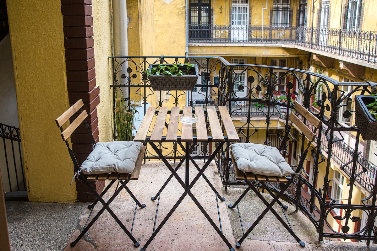 Luminoso y soleado apartamento en el quinto piso en el corazón de la ciudad con aire acondicionado tanto en el dormitorio como en la sala de estar. Situado frente al vibrante bar de ruinas Szimpla, ofrece un ambiente animado. Este piso bañado por la luz del sol, proporciona todos los elementos esenciales como sábanas, toallas y un secador de pelo, junto con wifi gratuito. Hay un ascensor disponible para tu comodidad. Te encantará la amplia terraza con unas vistas impresionantes de la Gran Sinagoga de Budapest, además de un fácil acceso a los mejores sitios, tiendas de comestibles, restaurantes y bares.