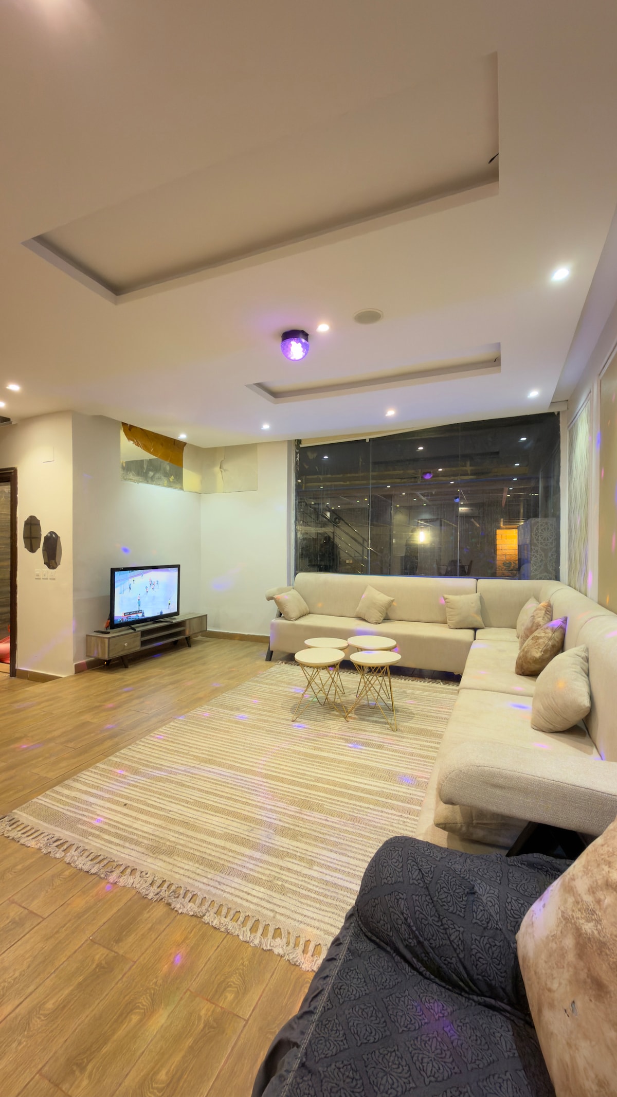 Mantente tranquilo y relájate con tu familia en este lugar tranquilo. Lejos del ruido de la ciudad y disfrutando del maravilloso ambiente en esta habitación principal de dos habitaciones, dos dormitorios y habitación con dos camas, un palacio, una cafetería, áreas verdes en el patio exterior, una sesión al aire libre, una piscina totalmente cubierta de vidrio, así como juguetes de arena para niños, así como algunos servicios de hotel como pasta, cepillos de dientes, champú y jabón, a aproximadamente 15 minutos de The Park.
