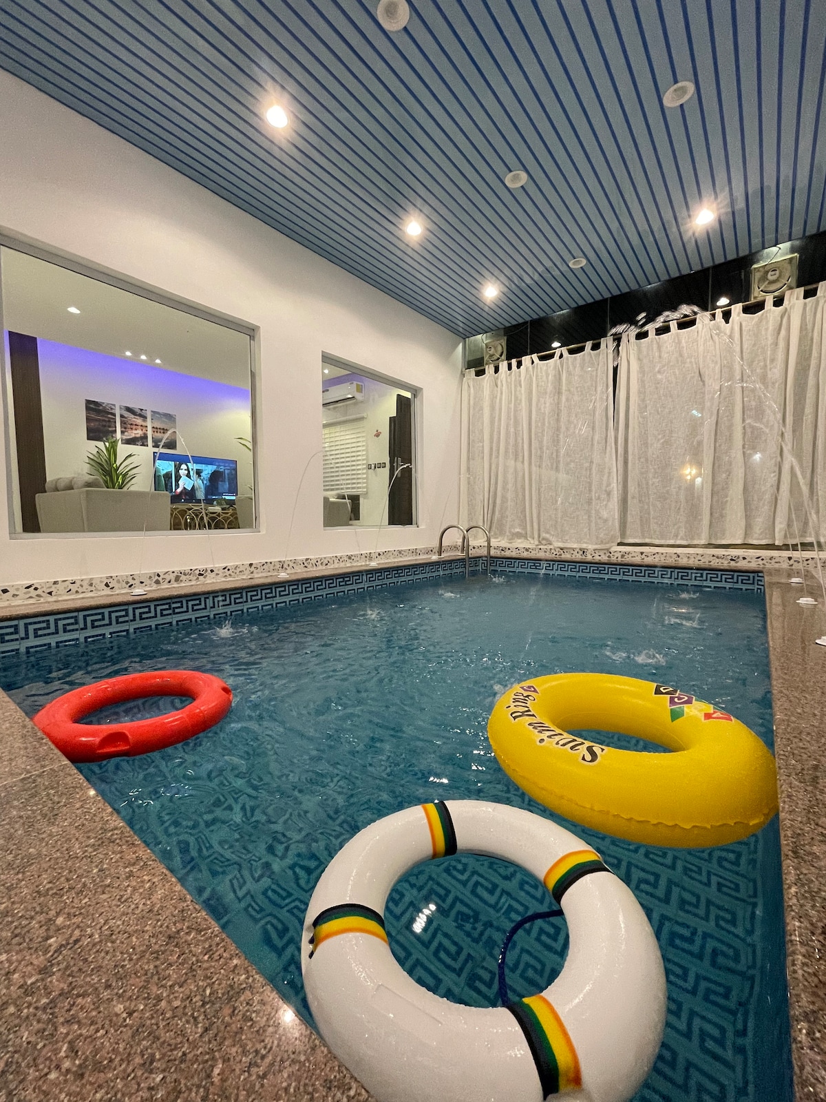 Una piscina en mi habitación, un cine y juegos acuáticos.