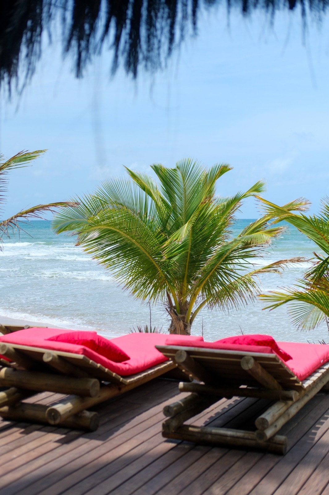 Prenditela con calma in questi spazi unici e rilassanti, circondato dai alberi di cocco e frutti esotici... Strutture fatte in materiali naturali come il tetto in piasava! Le case sono un 'open space' con 4 letti matrimoniali, AC, frigo, lavandino. Bagno al esterno con doccia e wc