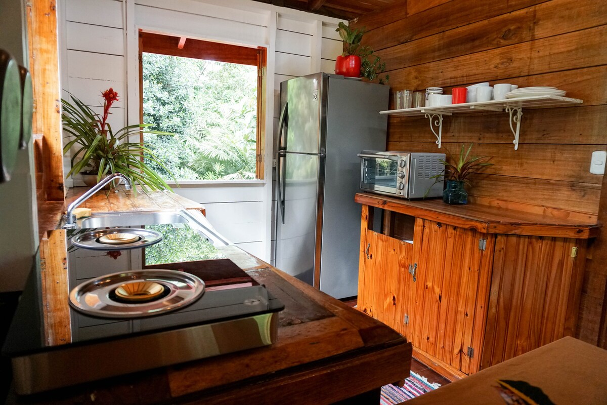 WE HAVE 100 Mb FIBER OPTIC INTERNET! WE HAVE 2 MORE HOUSES, JUST CONTACT US IN THE CASE THIS ONE IS NOT AVAILABLE. This casita is approximately 36 square meters. It has its own kitchen and dining room area as well as a covered outdoor living room. Casitas Las Flores is a small bungalow resort nestled in the jungle in a very quiet and safe area, not far from town, but still away from the hustle and bustle of town.