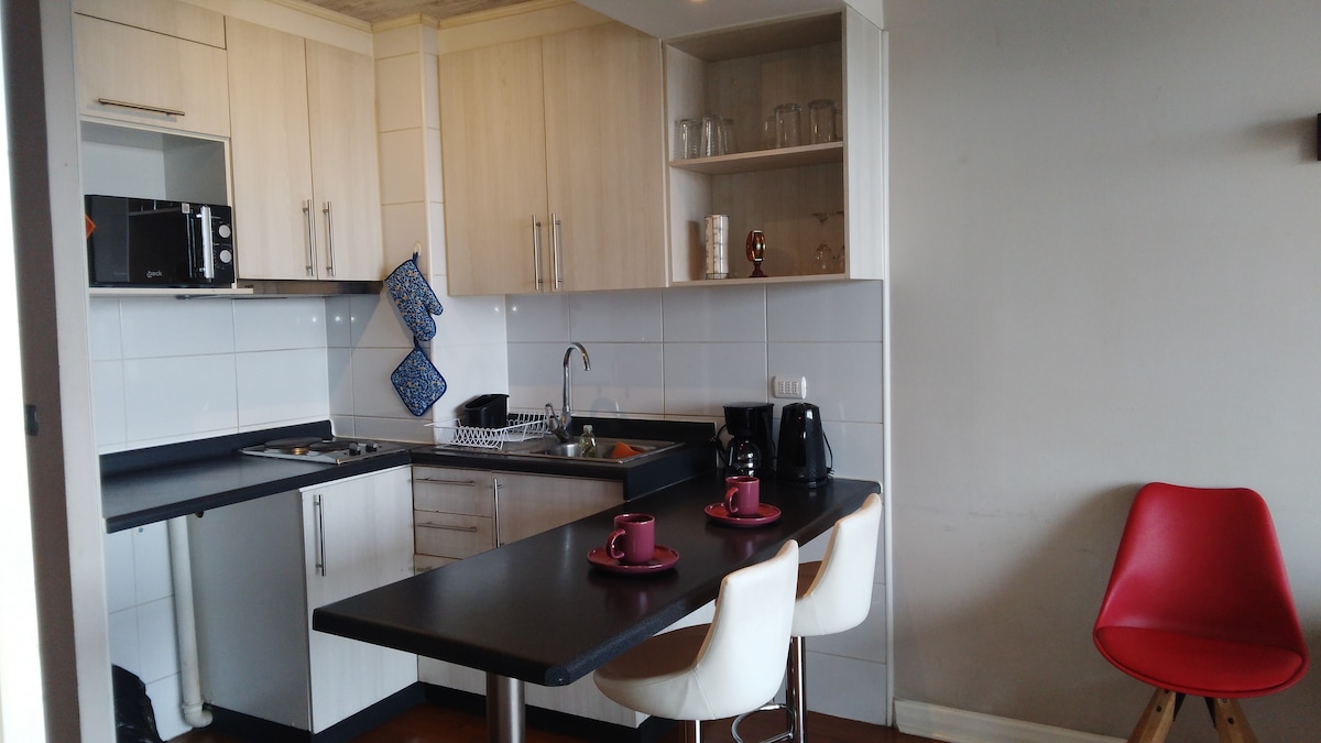 Espacio tranquilo, acogedor y con todo lo imprescindible para descansar, trabajar y cocinar. A pasos de la Teletón y Universidad de Talca, a media cuadra de un Punto Copec, cercano a almacenes; en vehículo, a 5 minutos de supermercados y a 15 minutos del centro de la ciudad.