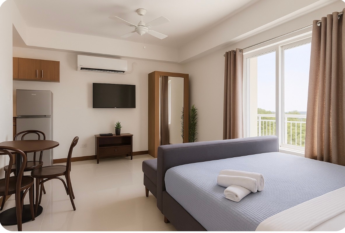 Cozy Seaside Hideaway Wake up to the sound of gentle waves and Cebu’s golden sunrise. Tucked behind Dusit Thani Mactan Cebu Resort, this small and simple apartment is peaceful, private, and filled with natural light. Ideal for anyone looking to relax, recharge, and enjoy authentic island living with ocean views just steps away.