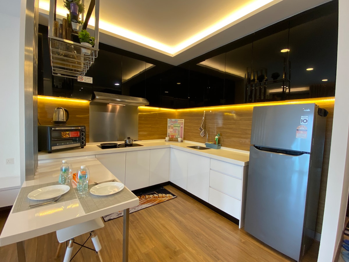 Acogedora unidad SOHO perfecta para parejas, viajeros solitarios o familias pequeñas. - 1 cama tamaño queen + sofá - Wifi, TV, aire acondicionado, secador de pelo. - Netflix. - Cocina con filtro de agua y nevera, jarra hervidora, freidora de aire - Paquetes de café y té de cortesía. - Cuna disponible (bajo petición) - Acceso a la piscina, gimnasio, parque infantil y cafetería. Cerca de Zus Coffee, Aeon Cheras Selatan, The Mines, Amerin Mall y tiendas de conveniencia. No se permite fumar ni mascotas. Llegada : 3:00 P. M. Salida: 12:00 p. m. ¡Relájate, recarga energías y siéntete en casa!