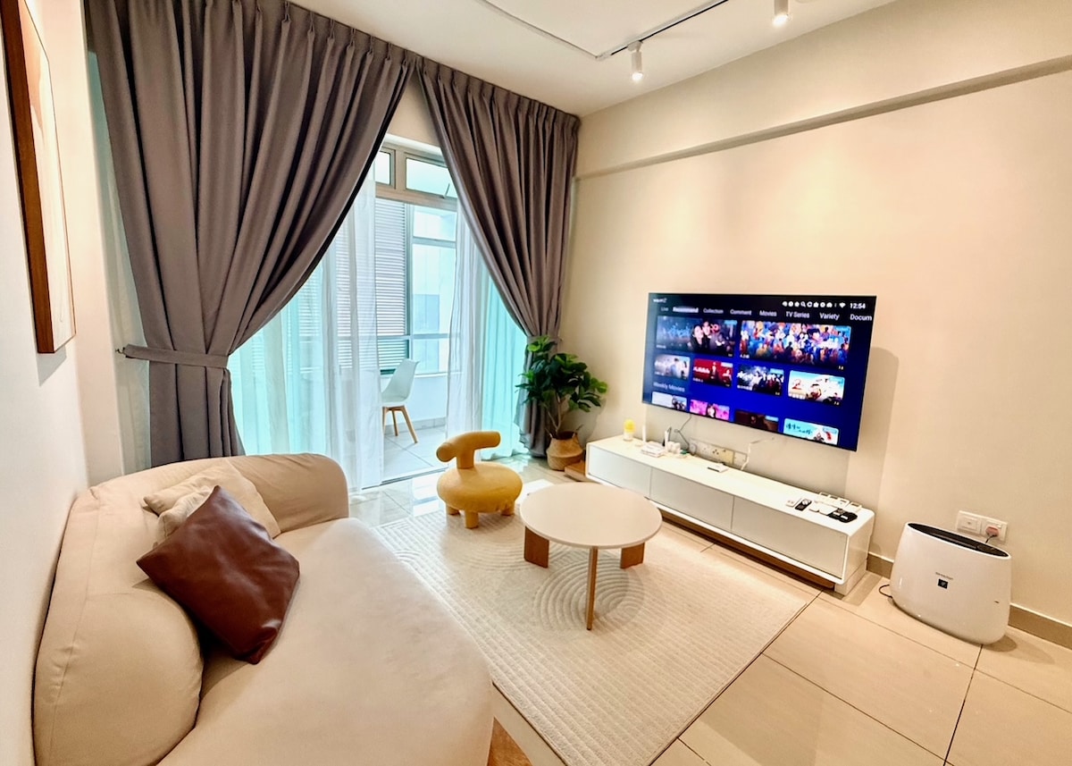 (1+1 dormitorios y 1 baño) Apartamento contemporáneo, moderno y acogedor en el corazón del centro de la ciudad de JB. Adecuado para familias de 4 personas, amigos y grupos de negocios. **A 5 minutos de CIQ, City Square, KSL, Pelangi y Larkin **A 8 minutos de Mid Valley Southkey, Larkin Sentral y Sentosa **A 15 minutos en coche del centro comercial Paradigm, Sutera, Skudai y Mount Austin Televisor inteligente✔ 4K. Wifi de✔ alta velocidad y mesas de trabajo con enchufe de extensión. ✔ Lavadora ✔ Aire acondicionado en todas las habitaciones. Consola ✔ Atari, Mahjong y juegos de mesa. ✔ Aparcamiento GRATUITO para 1 coche.