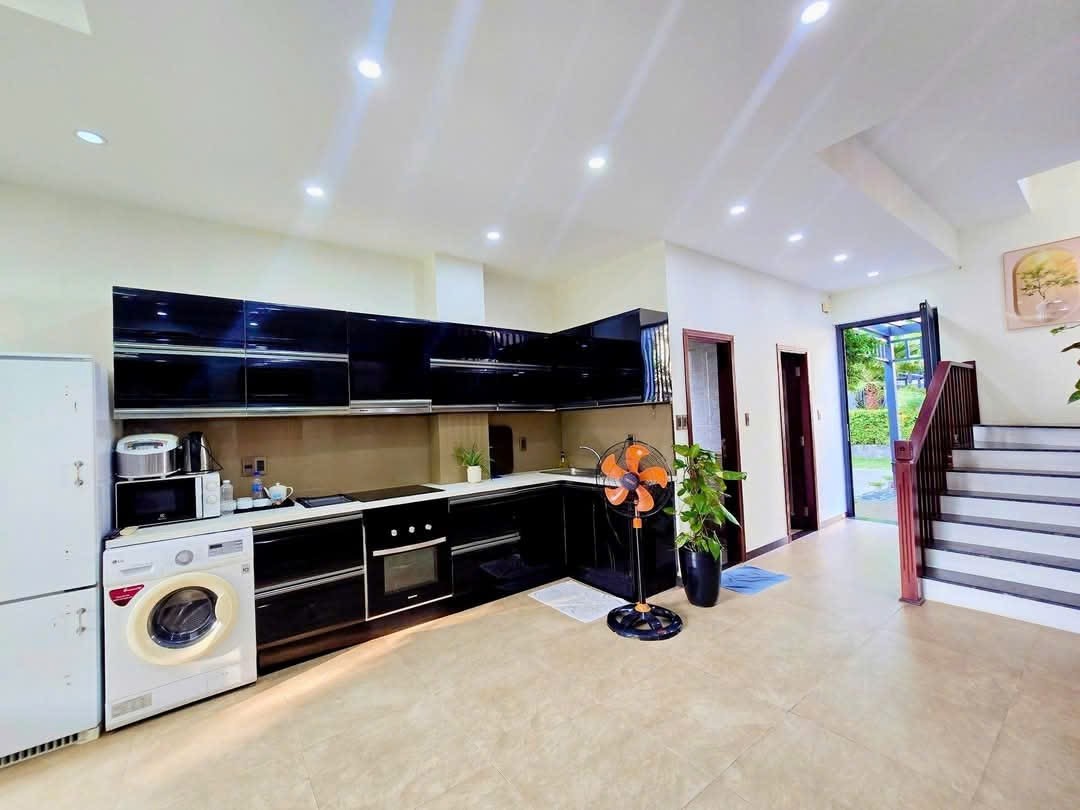 🌿 Villa tranquila de 2 dormitorios, ideal para familias/grupos de amigos. 2 camas de 1,8 m, 2 baños, bañera, agua caliente Cocina totalmente equipada, lavadora Amplio jardín, parrilla y piscina privada en las instalaciones 📍 Ubicación hermosa: A ~300 m del océano Cerca del mercado nocturno de Bai Trưởng, del cine y de restaurantes Supermercado Kingkong ~200 m ✨ Una escapada privada, pero aún así cerca de zonas animadas de entretenimiento y restaurantes.