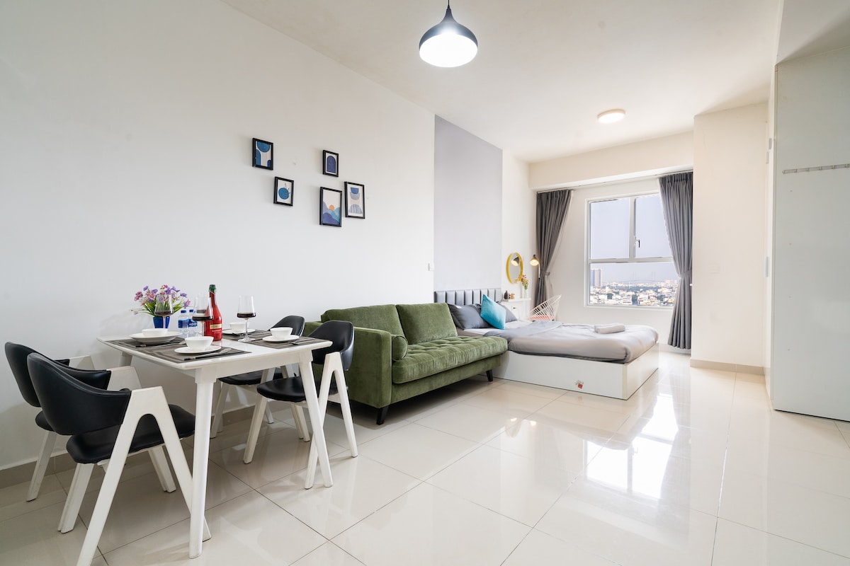 Un luminoso estudio con balcón de estilo escandinavo en Lavida Plus está cuidadosamente amueblado con todo lo que necesitas para una ESTANCIA LARGA y cómoda🌟, desde una cocina totalmente surtida hasta una lavadora en la unidad, lo que hace que se sienta realmente como tu propio hogar. 🔥 OFERTA ESPECIAL: ¡Reserva por más de 7 días ahora para desbloquear nuestro DESCUENTO SEMANAL especial! Ubicado en el Distrito 7, a pocos minutos de Phu My Hung, RMIT, SECC, Vivo City y Crescent Mall. 호치민 7군 푸미흥 중심 아파트 SECC 전시장 및 비보시티 바로 옆에 위치한 현대적인 숙소입니다. 胡志明市第七郡 (富美兴/富美興) 高级公寓紧邻 SECC 展览中心和 购物中心