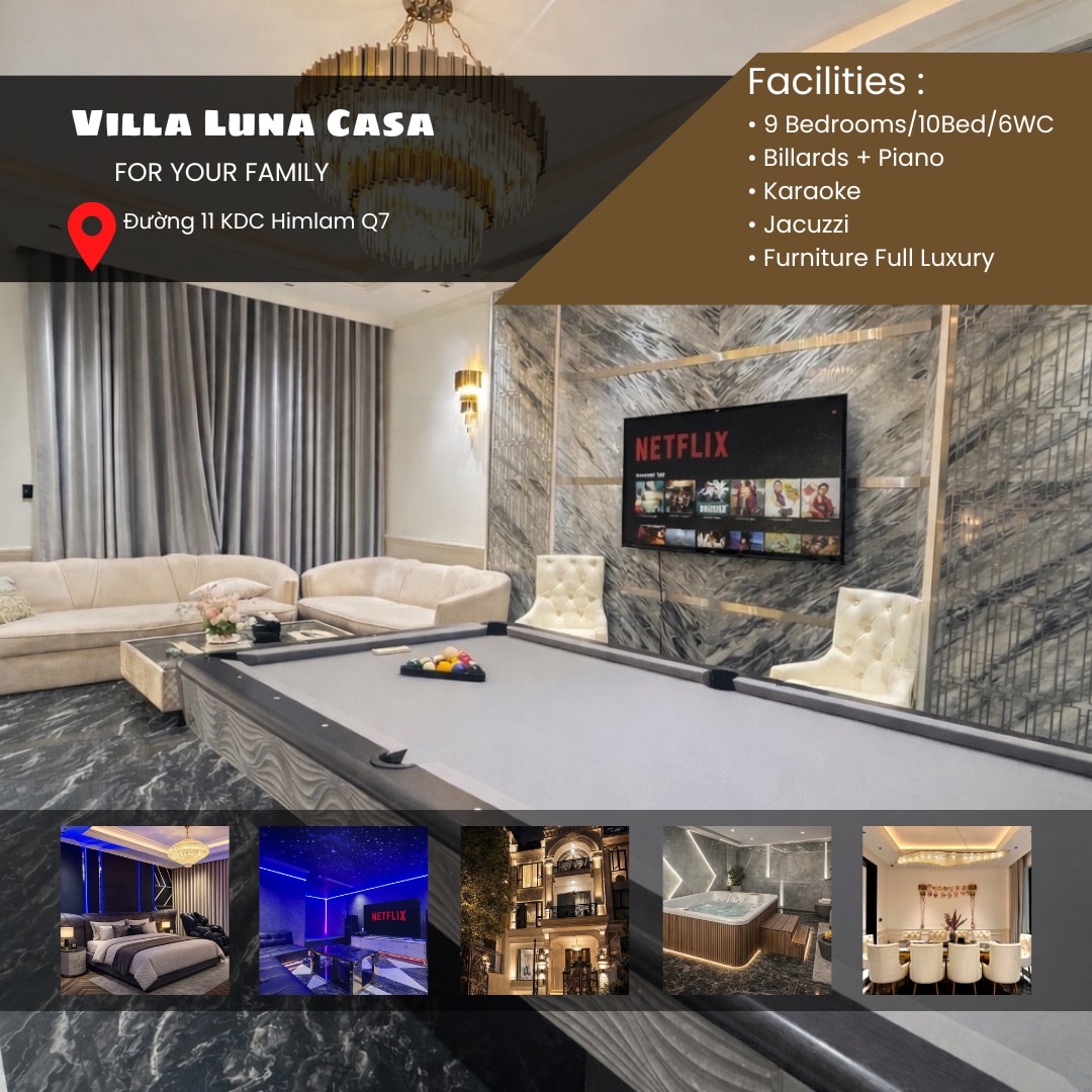 Situada en la exclusiva zona residencial de Him Lam, en el Distrito 7, la villa ofrece un espacio vacacional privado y tranquilo, al mismo tiempo que resulta sumamente práctico para desplazarse. Solo se tarda entre 10 y 15 minutos en llegar al Distrito 1, y se puede acceder fácilmente al centro de la ciudad, a centros comerciales, restaurantes, cafés y lugares de entretenimiento populares. Los alrededores están llenos de servicios, cuentan con buena seguridad y ofrecen un entorno de vida civilizado, por lo que son muy adecuados para unas vacaciones o para una estancia prolongada.