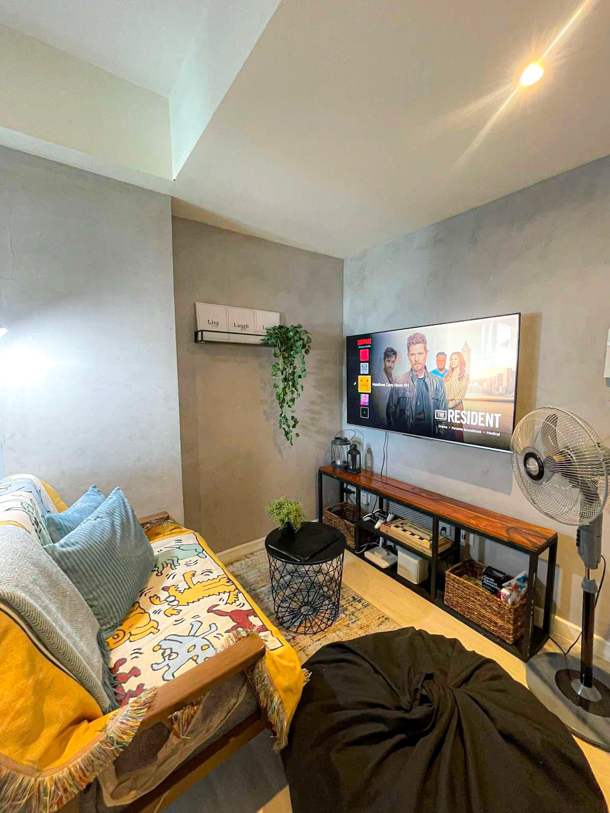 Bienvenido a nuestra moderna unidad de condominio totalmente remodelada ubicada en Maui Tower Azure Urban Residences & Resort. Esta unidad de 50 metros cuadrados incluye un balcón y cuenta con 2 dormitorios, que ofrece alojamiento para un máximo de 6 huéspedes. ✔ 1 cama tamaño queen en el dormitorio principal ✔ 1 cama doble con una cama individual extraíble en el dormitorio del huésped. ✔ 1 sofá (doble) cama en la sala de estar Consola de TV✔ Xiaomi M8 Pro Classic con 2 controladores + 20.000 juegos multijugador Parlante de barra de sonido✔ Samsung TV inteligente HD de✔ 43 pulgadas. ✔ Entrada con cerradura inteligente ✔ Karaoke