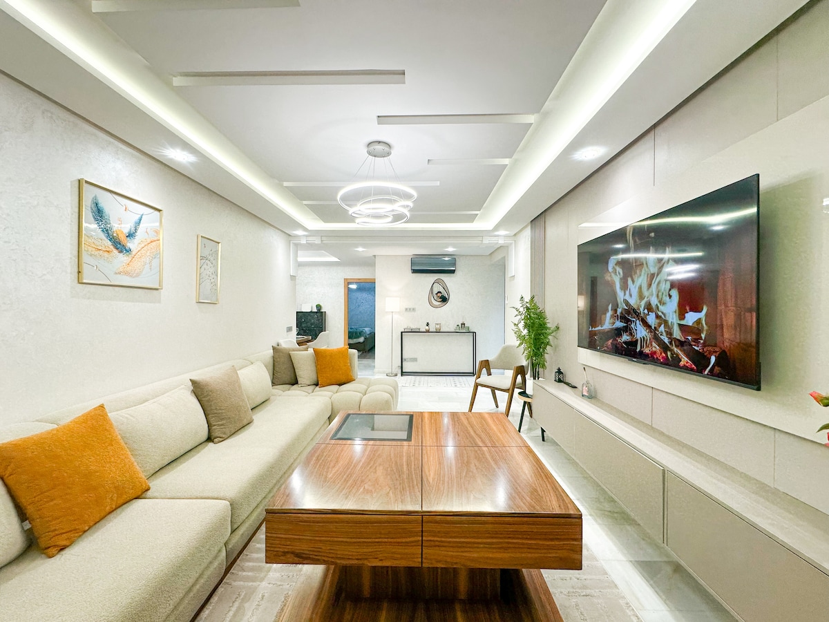Located in the heart of Tangier, this apartment combines urban chic with coastal tranquility. Each carefully decorated room invites relaxation. The modern interior, featuring an American kitchen and an Italian shower, is designed for your comfort. Enjoy high-tech amenities such as centralized air conditioning, fiber optic Wi-Fi, Smart TV, and Netflix. Just steps away from the beach and the TGV station, City & Sea is a luxurious oasis.