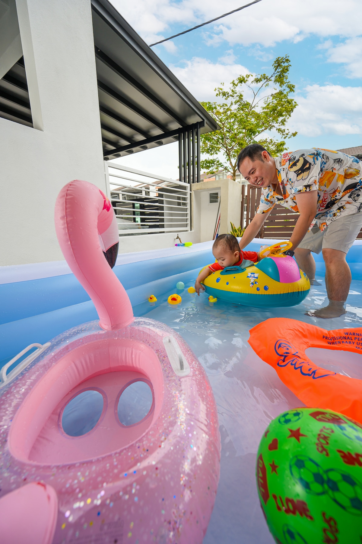 Modern Bali Stylish with Natural vibes give your a very complacent and peaceful stay. Pool and BBQ Grill Wifi provided Astro Channel, sports and movies Fully Airconditioned Washer machine Bathroom with water heater TV channel, Sofa, Fridge Outdoor CCTV Water heater and Microwave Important rules: Pet, Pork and Alcohol STRICTHLY NOT ALLOWED in the house