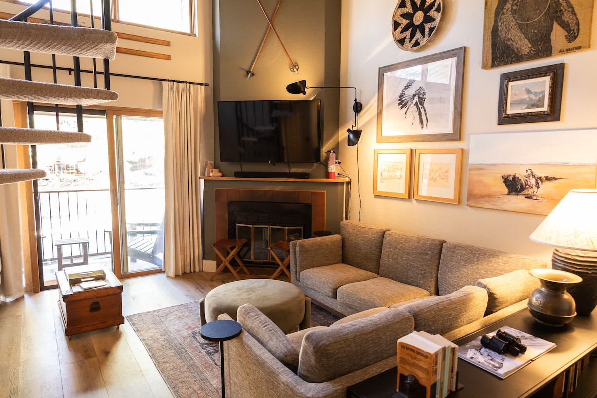 ¡Apartamento en Main Street Red River con chimenea y vistas!