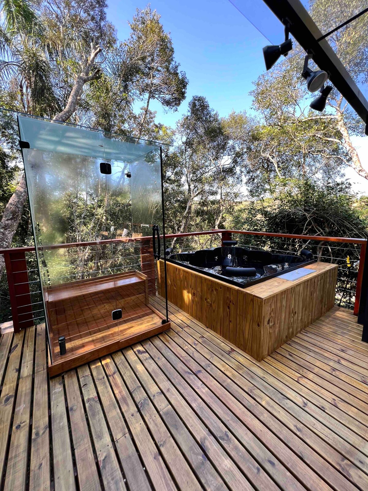 El Loft São José es una cabaña completa y lujosa con cerramiento de vidrio (techo y paredes), cortinas motorizadas de techo, proyector de 100'', bañera de inmersión interna, chimenea interna, fogata, jacuzzi externo, sauna y salón externo, todo construido sobre una terraza de madera con vista al bosque y amplio espacio externo, para disfrutar del contacto con la naturaleza con mucha comodidad, lujo, privacidad y tecnología. ¡Tus mejores momentos están aquí!