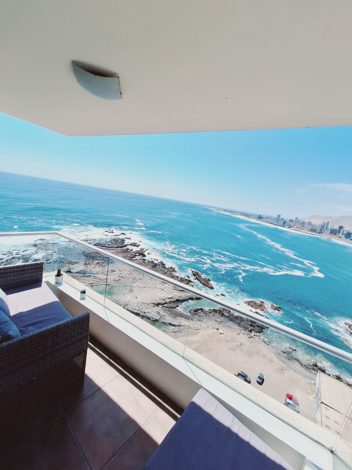 Nuevo recién entregado, frente al mar en primera línea, a 5 minutos caminando de Playa Cavancha, en pleno paseo Baquedano, casco histórico, ferias artesanales, pubs, museos y más, transporte público a la mano, parques públicos recién inaugurados, vista panorámica al mar, acceso rápido a la playa principal de Cavancha, acceso a los parques, piscina pública, mezclada con la comodidad de un departamento nuevo, moderno y equipado full.
