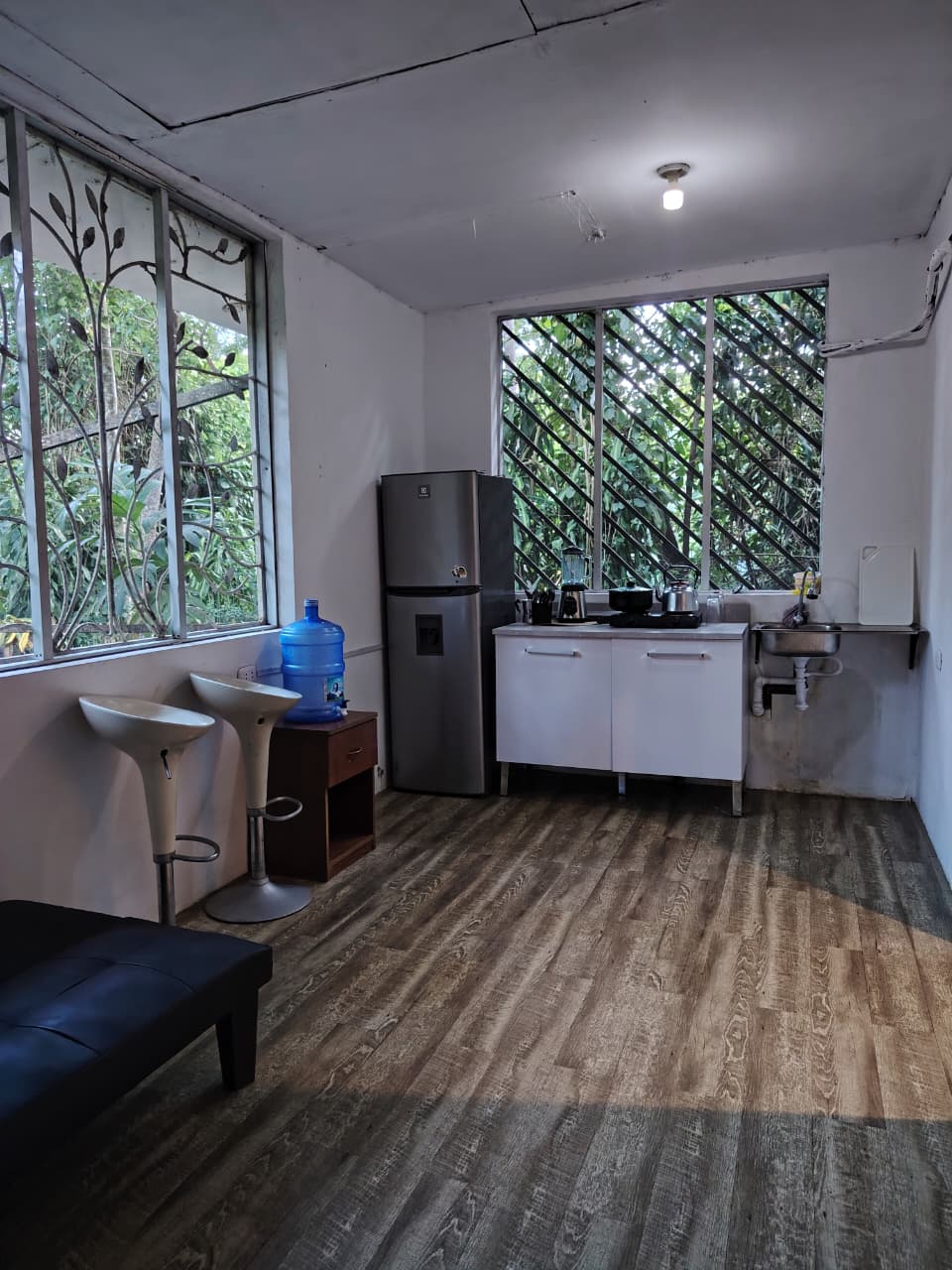 Suite con aire acondicionado a 7 cuadras de la plaza de Tarapoto, zona tranquila y segura, cerca a farmacias, consultorios médicos y odontológicos, mini-markets, mercado, fácil acceso. Está ubicado en el 3er piso Contamos con -Plancha de ropa -Intercomunicador con portero eléctrico. -Estacionamiento -Ventiladores adicionales -Netflix gratis -Extintores - Monoambiente - Kitchenette, baño completo propio, barra de estudio, ventilador de techo y de piso, y todo lo necesario para cocinar.