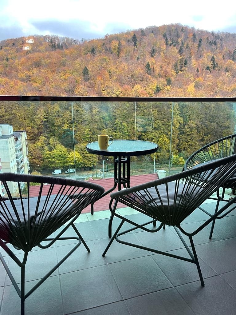 A uniquely and carefully designed, this apartment perfectly combines coziness with stunning Scandinavian accents. Situated in a new residential neighborhood, we go above and beyond to ensure a unique experience for our guests. Our home can accommodate up to 4 people and has its parking lot. The standout feature of this penthouse is the spacious terrace with a jacuzzi and a panoramic view over the mountains, being ideal for couples, business travelers, solo adventurers, or families (with kids).