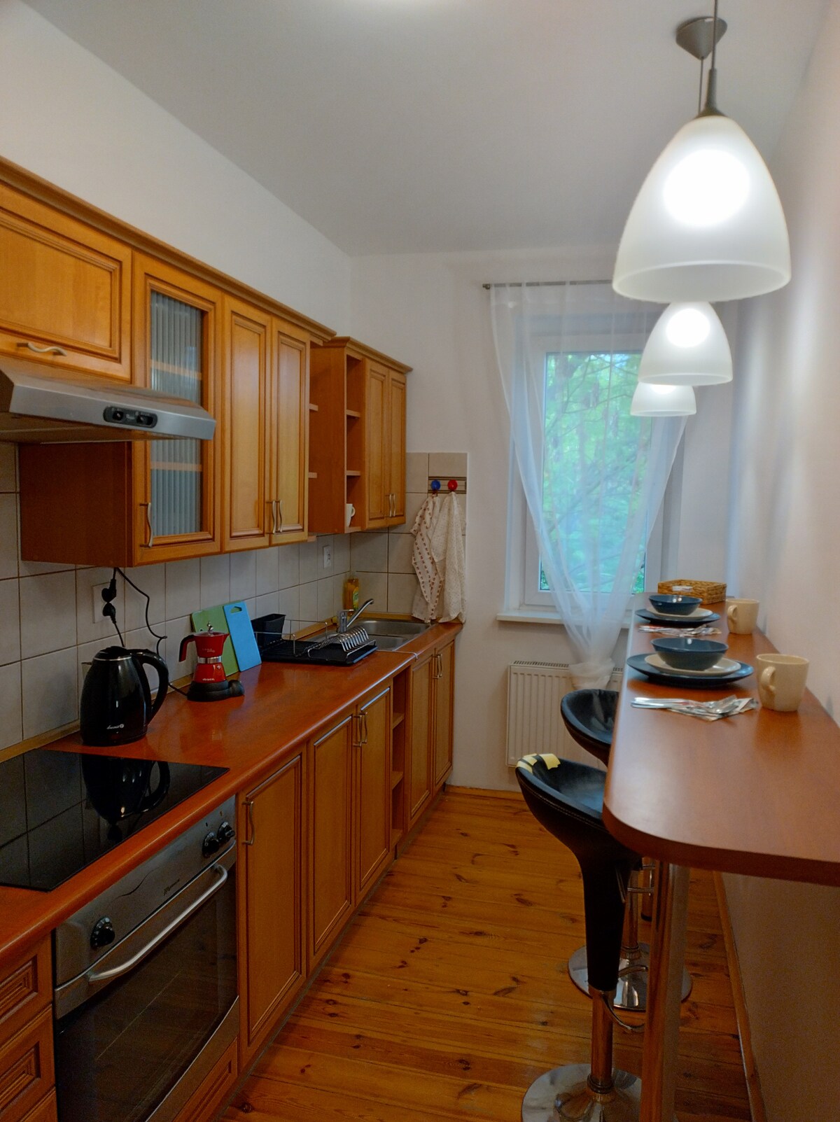 Goście mają do dyspozycji słoneczne mieszkanie na parterze w bloku mieszkalnym, z balkonem. W cichej okolicy z dużą ilością zieleni. ---- Den Gästen steht ein Sonniges Appartement im Erdgeschoss mit Balkon in einem Wohnblock zur Verfügung. In einer ruhigen, grünen Gegend. ---- Guests have at their disposal an sunny apartment on the ground floor in a block of flats, with a balcony. In a quiet, green area. Wir sprechen Deutsch ---- We speak Englisch