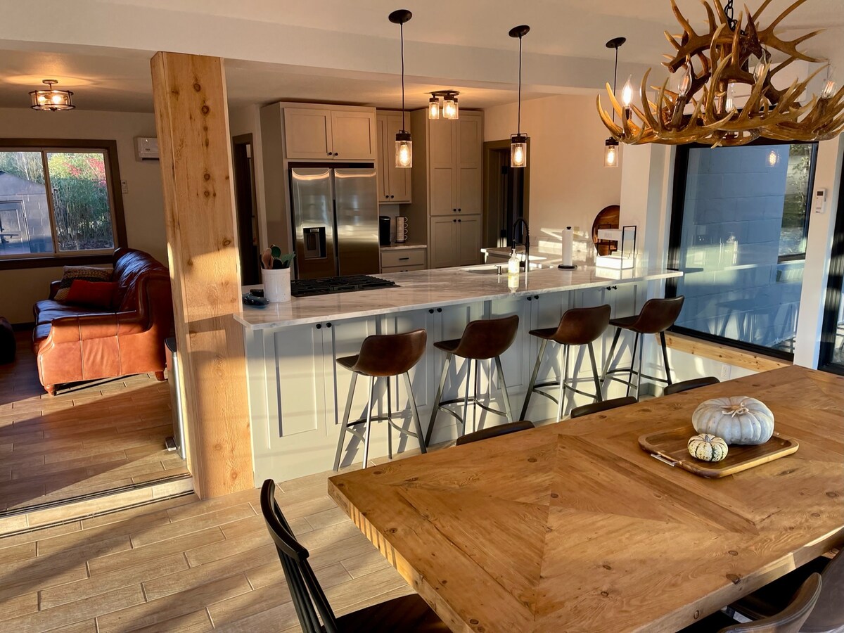 Despiértate con una impresionante vista al lago de 180° justo encima del muelle de carga de Snake Creek Marina, donde la energía del lago te rodea todo el día. Disfruta del impresionante paisaje desde la sala de estar, cocina y comedor. Relájate en el jacuzzi para 8 personas mientras los barcos regresan a la orilla o relájate en acogedores columpios en el porche, sumergiéndose en el ambiente tranquilo. Con un sinfín de vistas y un ambiente sereno, este refugio junto al lago ofrece la combinación perfecta de comodidad y relajación.