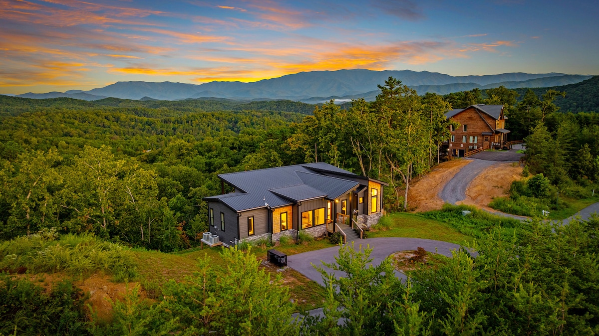 IG/FB/TikTok: SixDiamondsCabins. ¡VISTAS! A solo minutos de todo: villa de LUJO PERSONALIZADA EN LA CIMA DE UNA MONTAÑA diseñada por arquitectos de renombre. Más de 2 acres, más de 5800 pies cuadrados y muchas cubiertas/solárium frente al monte LeConte. JACUZZI para 7 personas nuevo, SALA DE CINE con proyector de 100 pulgadas, 7 televisores, SALAS DE JUEGOS con piscina, Pac-Man, ping-pong, Golden Tee, pinball, Buck Hunter y Cornhole, mazmorra de Harry Potter, música bluetooth, 3 FOGONES/CHIMENEAS, camas cómodas, wifi de alta velocidad, aparcamiento y carreteras fáciles.