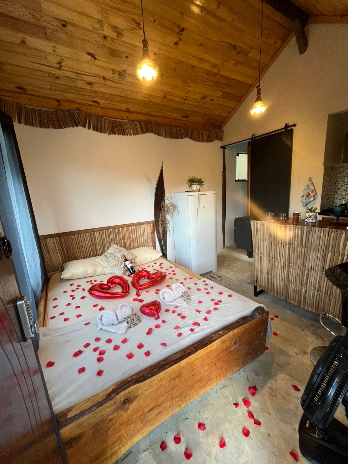 En nuestro espacio tienes privacidad porque en el lugar donde se encuentra la casa solo hay una cabaña. Vivimos justo debajo, lo que no quita la privacidad de los huéspedes. Ofrecemos toallas de baño y ropa de cama. Máximo de huéspedes: 3. ¡Ofrecemos un colchón individual para el tercer huésped junto con ropa de cama y toalla de baño también! En nuestra cocina hay utensilios, sandwichera, licuadora, cocina de dos hornillas con horno, un frigobar, una nevera que está en el exterior, cerca de la barbacoa, y también una olla de fondue. También ofrecemos sal, azúcar, café instantáneo y detergente. En nuestro local también tenemos agua para la venta y otros como barra de chocolate y malvavisco La televisión no tiene canales abiertos solo Netflix, Amazon, Globoplay, YouTube… También ofrecemos cesta, toalla y utensilios para hacer un picnic. Barrio tranquilo, pocas casas alrededor haciendo el ambiente más privado y silencioso. El camino es de tierra hasta el lugar, dependiendo de la época del año, el camino tiene algunos agujeros debido a la lluvia. Cualquier coche puede acceder al lugar. Está aproximadamente a 8 minutos por camino de tierra. El lugar es de integración con la naturaleza. Preguntas frecuentes: - No tenemos aire acondicionado - No tenemos secador de pelo - La cabaña no está cercada, solo la propiedad, así que si llevas a tu mascota, debes tener cuidado. -Cualquier tipo de coche llega al lugar. - Hay restaurantes, mercado y panadería cerca (aproximadamente a 10 minutos) - Uber llega al lugar, simplemente no es posible quedarse fuera, especialmente por la noche, ya que Uber en el lugar es limitado.