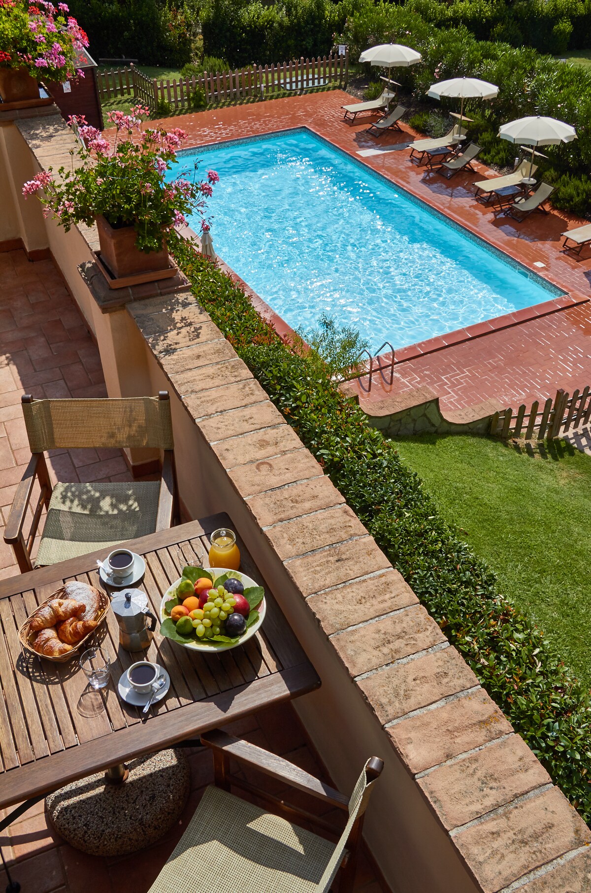Immagina di svegliarti con le colline ornate di borghi e campanili a perdita d'occhio oltre la finestra della camera da letto: un'alcova con soffitti spioventi, travi e travicelli, pavimento in legno, in cima ad un antico casolare. Immagina da ogni affaccio della casa il sole che splende sulle vigne, oppure immagina il verde acceso degli uliveti dopo la pioggia primaverile oltre la grande terrazza adiacente alla cucina.
