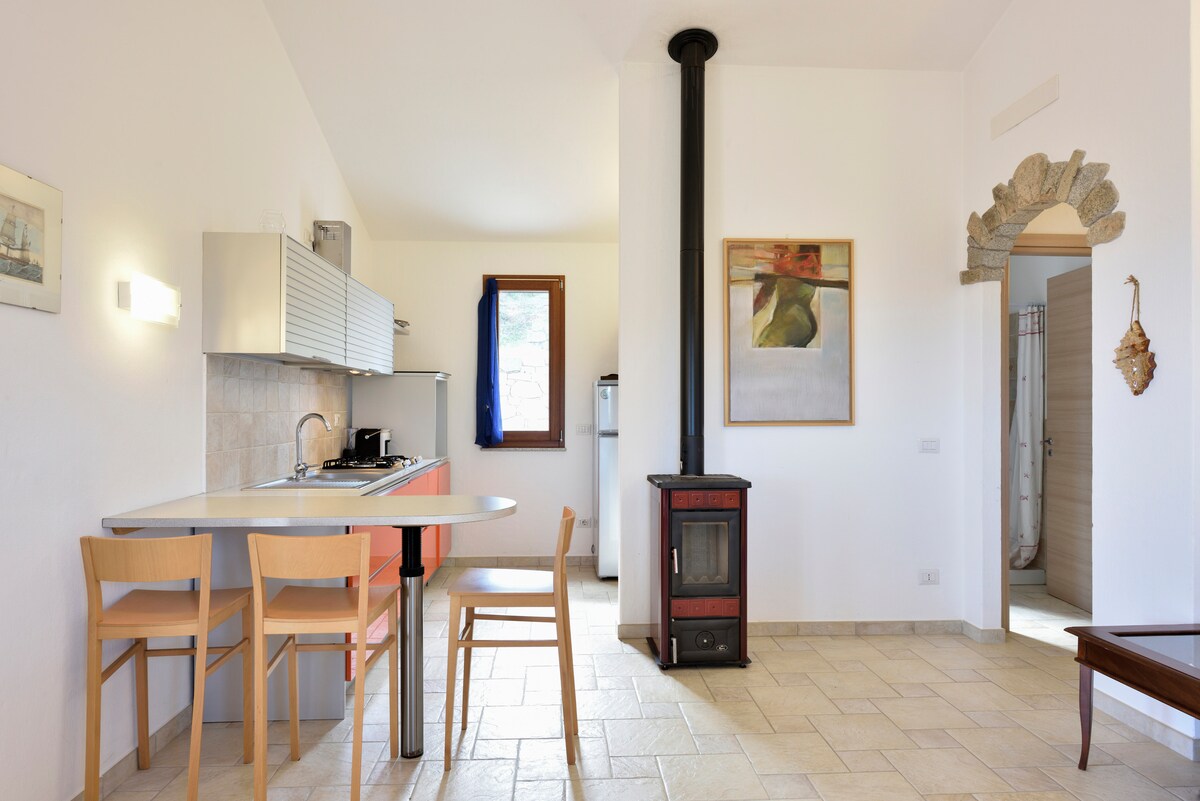 I.U.N Q0566 - La maravillosa casa Tizy House es una casa de vacaciones rodeada de vegetación con un gran jardín privado de uso exclusivo completamente vallado. Puede alojar hasta un máximo de 4 personas más un bebé y dispone de: un dormitorio doble, un dormitorio con 1 litera y, si lo desea, también una cuna de viaje, un baño completo, una sala de estar y una cocina. La propiedad se encuentra a solo 800 metros de la playa de Foxi Lioni, a la que también se puede llegar a pie. ¡Relax garantizado!