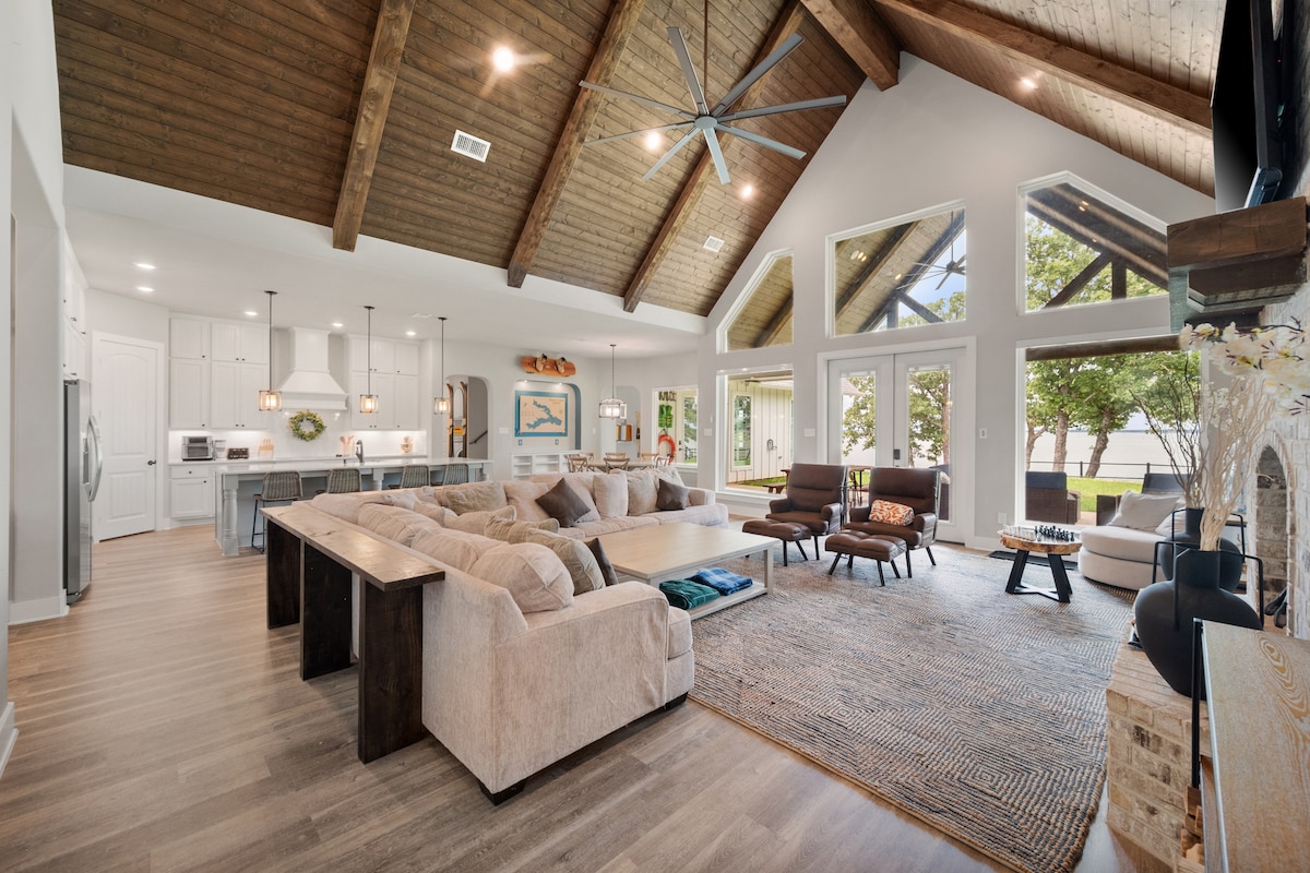 Come enjoy stunning views! This private home sits on almost an acre of waterfront property and includes a private dock, pool, hot tub, and outdoor kitchen. Inside, enjoy relaxation at its finest including game room, entertainment room with seating for 20+. Smart TV's in every living area and bedroom. All this within 3 miles of the famous Granbury Square. Also have adjoining tiny home available to rent and add 4 additional guests https://www.airbnb.com/l/rD4kTJAO