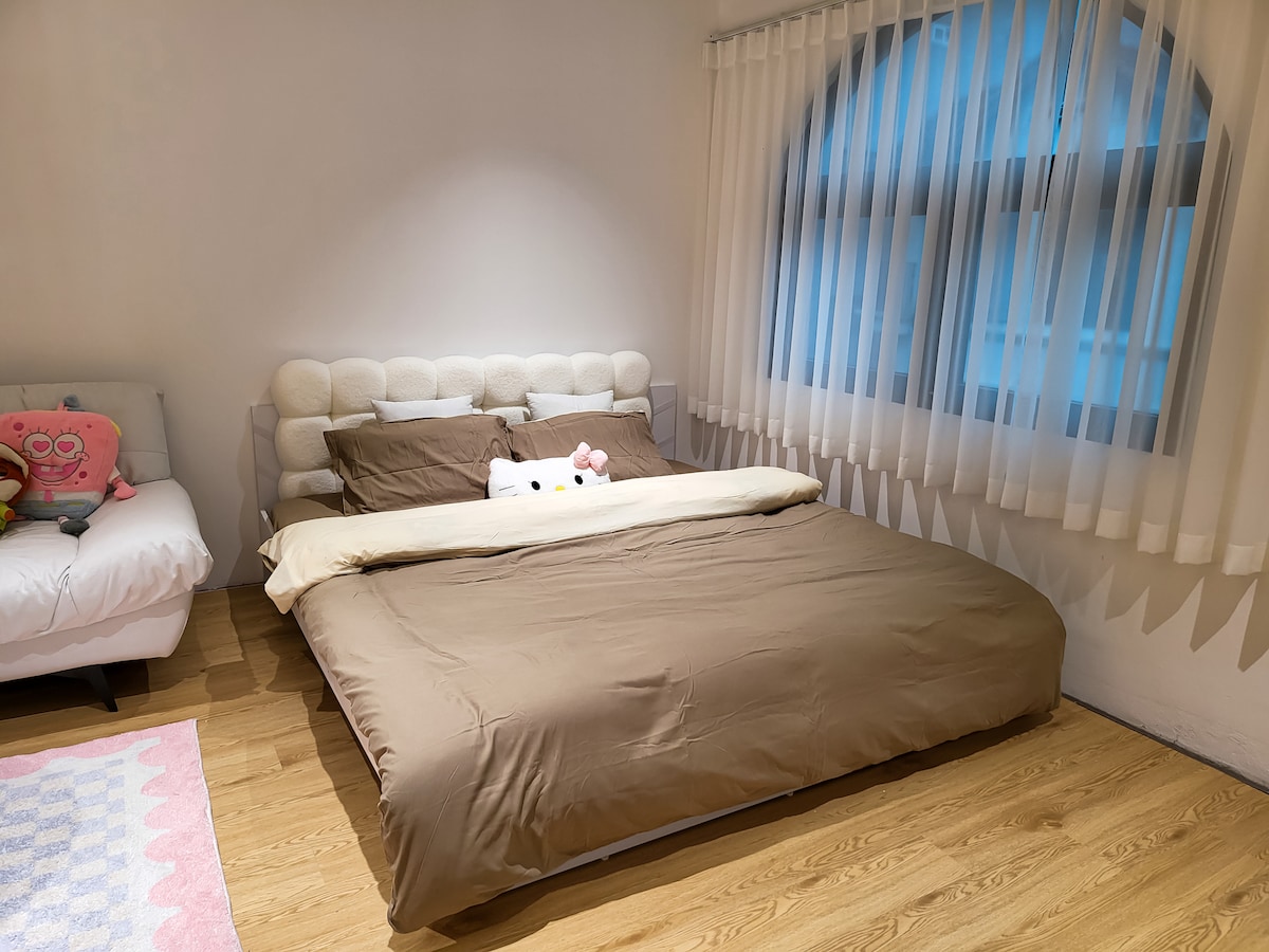 El apartamento con una superficie de aproximadamente 55 m2, diseñado 1 dormitorio grande y 1 dormitorio pequeño, cocina llena de equipo de cocina, TV de conexión a Internet, lavadora privada, lavadora privada, viaje Puse un colchón muy liso para tu sueño. El departamento con una vista de la ciudad es hermoso por la noche El agua potable está disponible de forma gratuita durante la estancia El servicio de limpieza también es gratuito 3 días/ hora si lo requieres Es un gusto darte la bienvenida a mi departamento.
