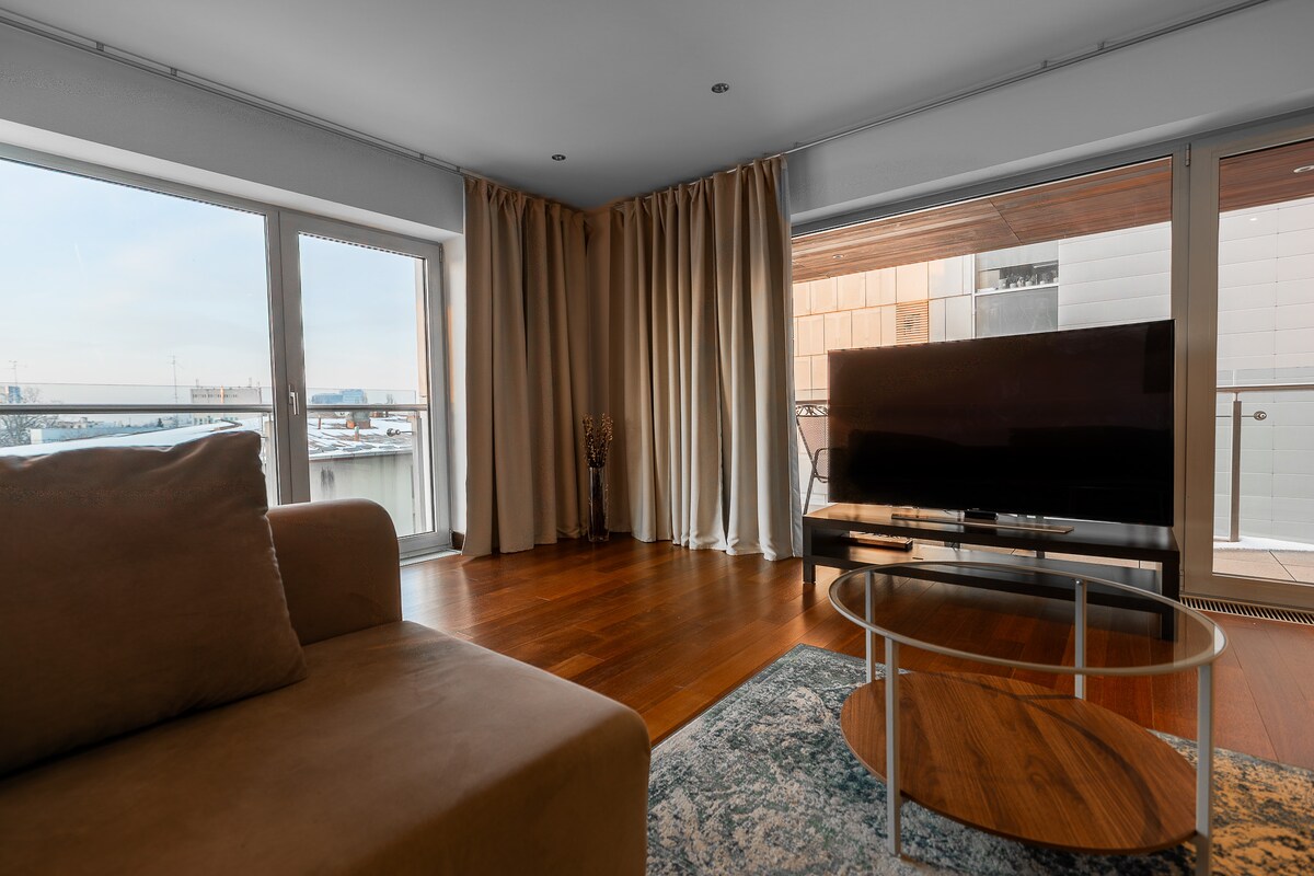 Moderno apartamento de 2 habitaciones en la Torre Aviației, junto al Museo de la Aviación. Elegante diseño contemporáneo, acabados prémium. Amplio dormitorio + cómodo sofá cama. Smart TV, Netflix y wifi de alta velocidad. Cocina totalmente equipada Aparcamiento privado y seguridad las 24 horas, los 7 días de la semana. A minutos del centro comercial Promenada y de los principales centros de negocios. Acceso rápido al parque Herăstrău y al aeropuerto. Check-in flexible para una estancia cómoda.