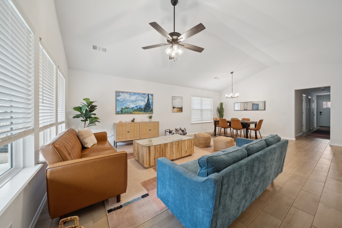 ¡Te damos la bienvenida a Hurricane House! Ubicado en el «ojo» del huracán dorado que es el campus de la Universidad de Tulsa, el espacio tiene capacidad para 6 personas en 2 dormitorios más un área de oficina dedicada con un futón y 1 baño. A menos de una milla de la Rt. 66 y cerca de una importante arteria de viaje, está cerca de todos los lugares que quieras visitar en el corazón de Tulsa. Esta casa totalmente remodelada cuenta con muebles y electrodomésticos nuevos, lavadora y secadora, interior ecléctico, arte local, plantas de interior, cocina surtida, escritorio ajustable y terraza cubierta.
