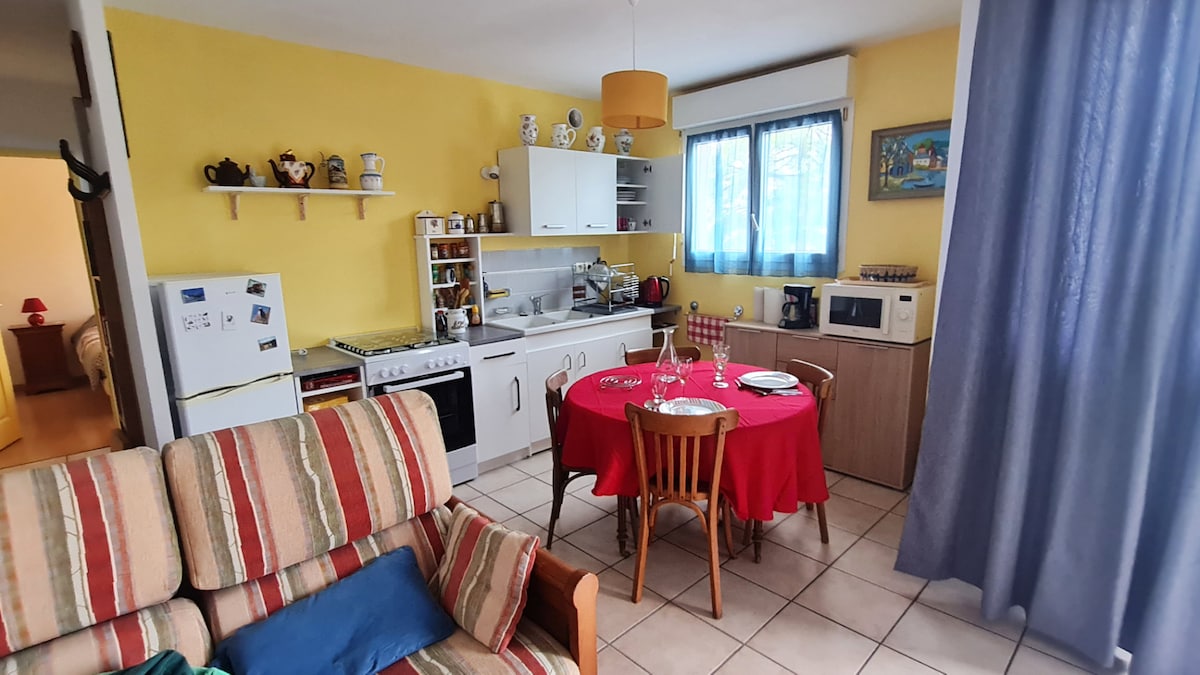 Descubra este encantador apartamento de 40 m², perfecto para una estadía cómoda y agradable. ✅ Habitación con cama de matrimonio +escritorio ✅ Salón luminoso, TV y sofá cama ✅ Cocina equipada para preparar sus comidas con total autonomía ✅ Sdb moderno (ducha) + inodoro ✅ Entrada independiente 🚗 Situado en un eje conveniente y bien comunicado, permite un acceso rápido a las tiendas y al transporte. 🚲 A 150 m de la bicicleta de carretera 🛍 Cerca de comercios y zona comercial 🚉 Estación de tren a 3 min andando 🚌 Parada de autobús a 20 m