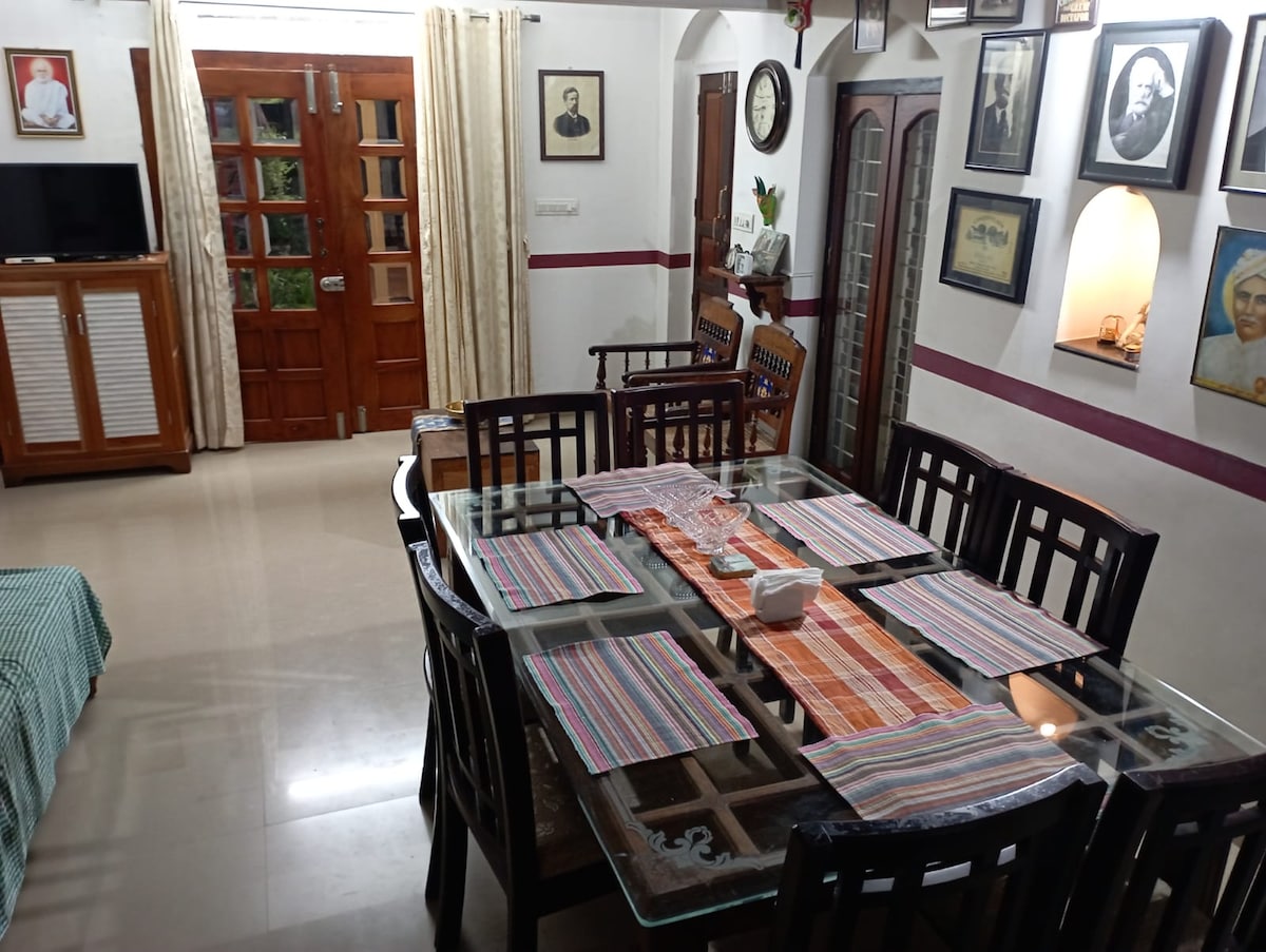 Relájate y relájate en este espacio tranquilo y elegante. Pasarela en frente que conduce a la hermosa Riverside. El gran Frontyard de azulejos y el patio lateral ofrecen alrededor de más de 100 asientos para fiestas, estaciona de 8 a 10 autos en las instalaciones. Aire acondicionado, agua caliente, lavadora y secadora, vecindario tranquilo, a 25 pies de Ekm-Mvpa Rd, a 1 km de Muvattupuzha Town. CENTRO TURÍSTICO 4 Cochin Int'l Airport-35 km, Munnar-88 km, Fort Cochin-30 km, Thattekad Bird Sancturary- 25km, Elaveezha poonchira-43km, Thommankuthu Waterfalls-34 km, Athirappilly Waterfalls-62km