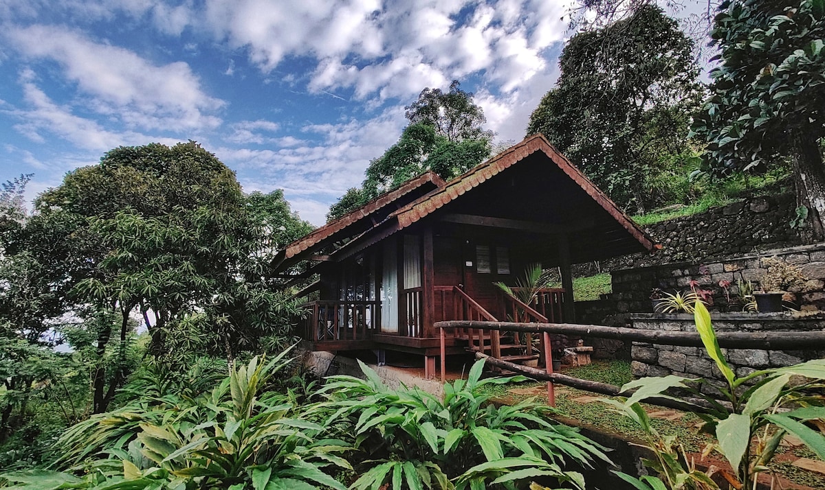 SE AÑADE UNA CASA DEL ÁRBOL Coffee Camp es una casa familiar serena situada en el corazón de una pintoresca estación de colina. Ubicado en lo alto de una exuberante colina verde, este encantador refugio ofrece a los huéspedes una escapada tranquila del ajetreo de la vida urbana. Rodeado de densas plantaciones de café y cardamomo, el alojamiento ofrece una mezcla perfecta de naturaleza y comodidad. El alojamiento en Coffee Camp es de cabañas rústicas, cuidadosamente diseñadas para sumergirte en la belleza del aire libre y, al mismo tiempo, garantizar comodidades modernas.