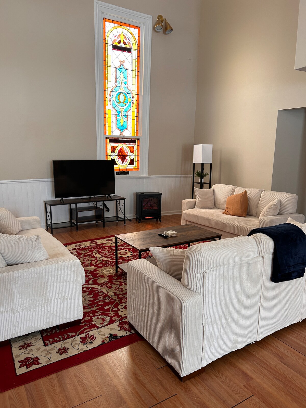 Relájate y desconecta en este alojamiento tranquilo y elegante. Perfecto para una escapada romántica o un retiro de trabajo, este apartamento recientemente renovado encarna una sensación boho fresca con alma vintage. Disfruta de la hermosa vista desde el gran ventanal, cocina en la adorable y funcional cocina americana o relájate en la cama junto a la chimenea de gas. Situado en el distrito histórico de Auburn y a 1 minuto en coche de Wegmans. Desde aquí se puede acceder fácilmente a pie a las tiendas, restaurantes y lugares de interés del centro de la ciudad.