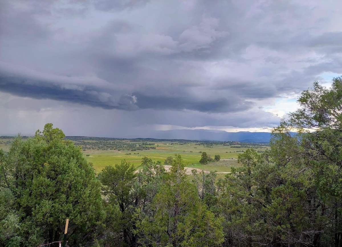 Low cleaning fee! Hot tub with pro weekly service! Dog friendly with no pet fees! Most romantic retreat in Colorado. Camp Kimberly is surrounded by National Forest. Views from this modern and private 35-acre getaway are jaw-dropping. STARS! Camp Kimberly's serenity will reset your energy. Luxury amenities including a brand new King bed, speedy Starlink WiFi, super-cool air conditioning and large 4K TVs with Sonos! Town is close enough and far enough away! @CampKimberlyPagosa VRP: 036525