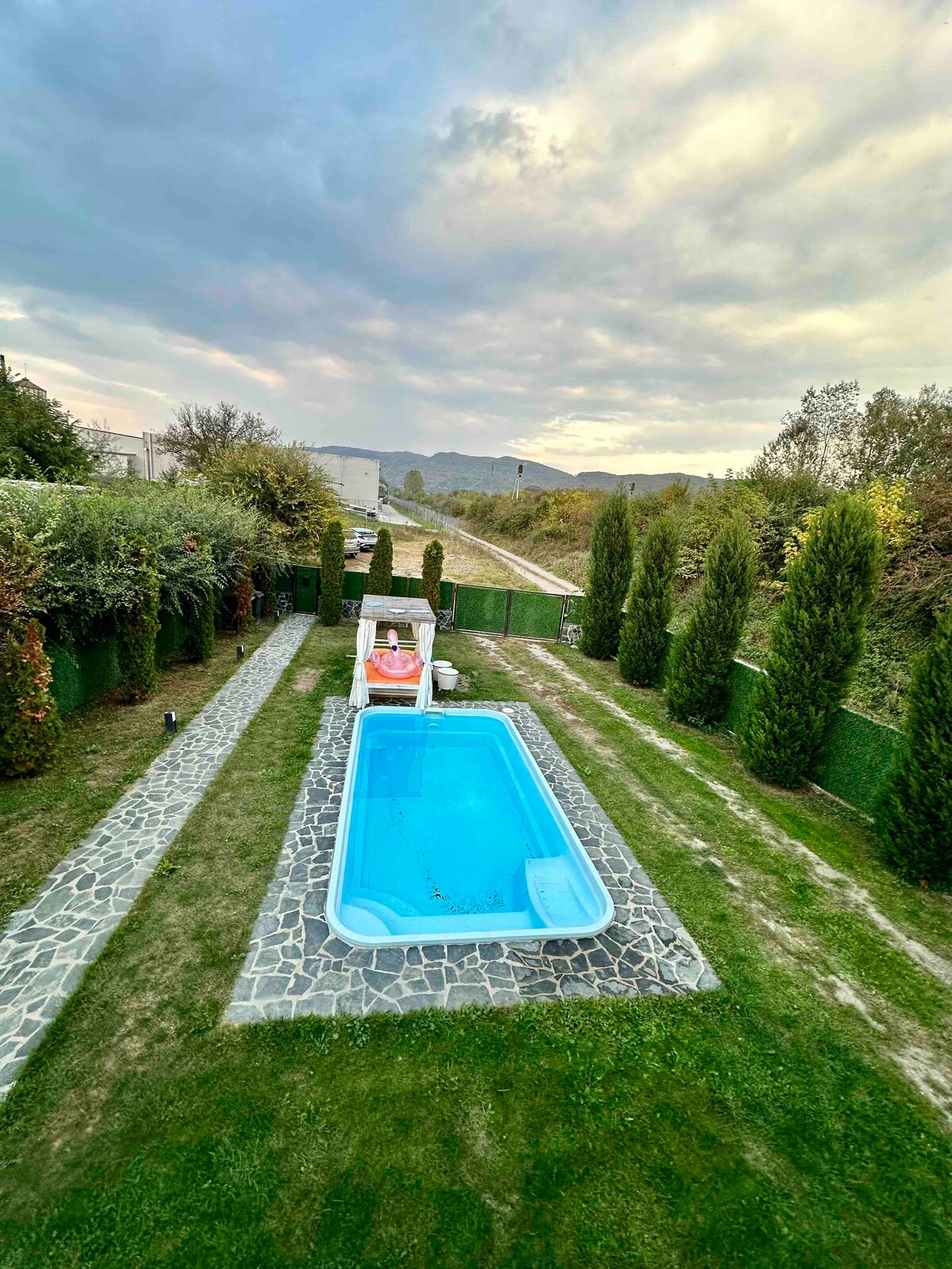 Esta casa de un dormitorio, aunque ubicada en la ciudad, está rodeada de verdes colinas y canciones de pájaros. Delante encontrarás un bonito patio para relajarte después de un día de trabajo. Los niños pueden encontrar en el patio una cama elástica y una piscina hinchable durante el verano y un columpio durante todo el año. Cerca de la ubicación hay muchos senderos desde donde se puede admirar la ciudad desde arriba.