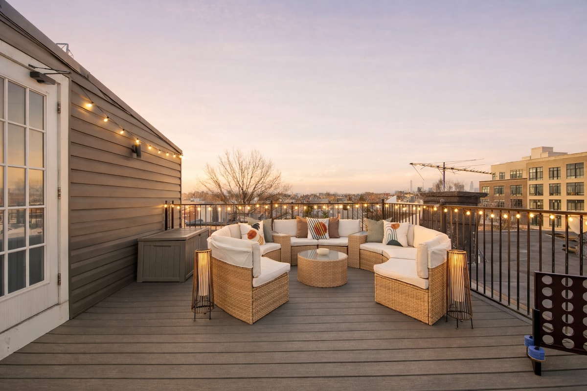 Elegante departamento de 3 habitaciones/2 baños con azotea•A poca distancia a pie de NYC PATH•Estacionamiento