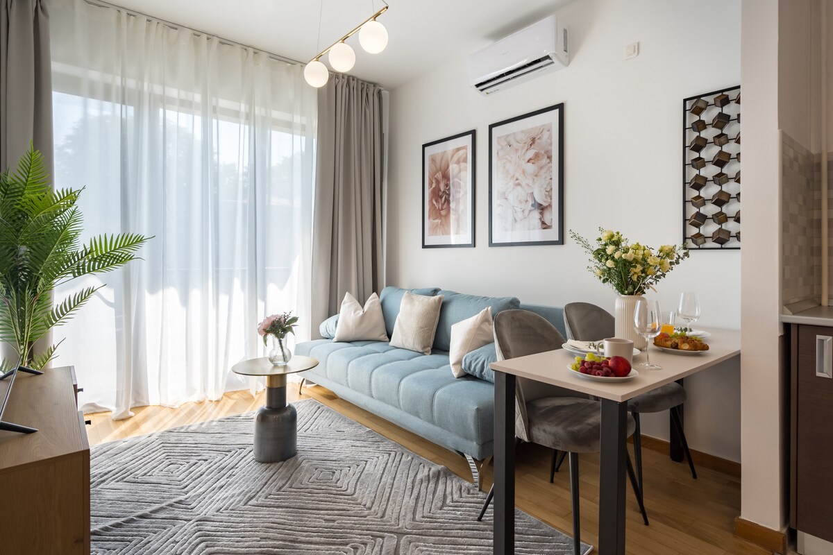 Despiértese con vistas directas al secreto mejor guardado de Bucarest: el jardín del histórico Palacio del Parlamento de 1907, ubicado en el corazón de la ciudad. Sal a tu terraza privada, sírvete un café y disfruta de uno de los lugares más tranquilos que encontrarás en el centro de Bucarest. A pesar de estar justo en el centro de la ciudad, este estudio se siente como un verdadero refugio urbano: tranquilo, luminoso y completamente alejado del ruido de las calles de abajo.