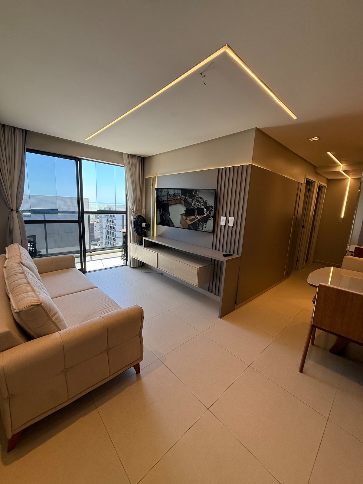 ¡Siga @ y vea los videos del Apt! Nuestro apartamento tiene 90m2 y está ubicado en el borde del cabo blanco, ¡con la mejor vista de la ciudad! El apartamento consta de sala de estar, cocina integrada y 100% equipada, un dormitorio con cama queen y aire acondicionado, y una suite con 2 camas queen y aire acondicionado. Total de 2 baños en el apartamento, y 2 dormitorios, con capacidad para 6 personas. Tenemos smart tv, con acceso a su Netflix y YouTube; Wi-Fi 500 mega y cerradura electrónica con self- check in .
